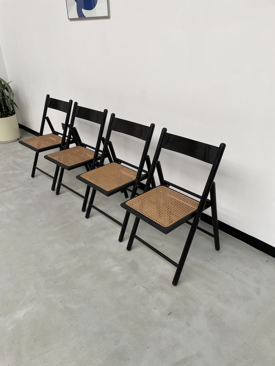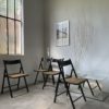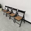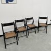 Set composé de 4 chaises pliantes en hêtre noirci et assises cannées des années 60.