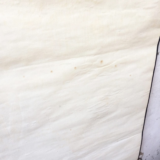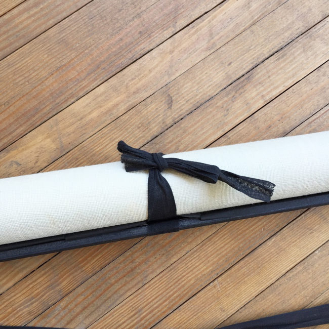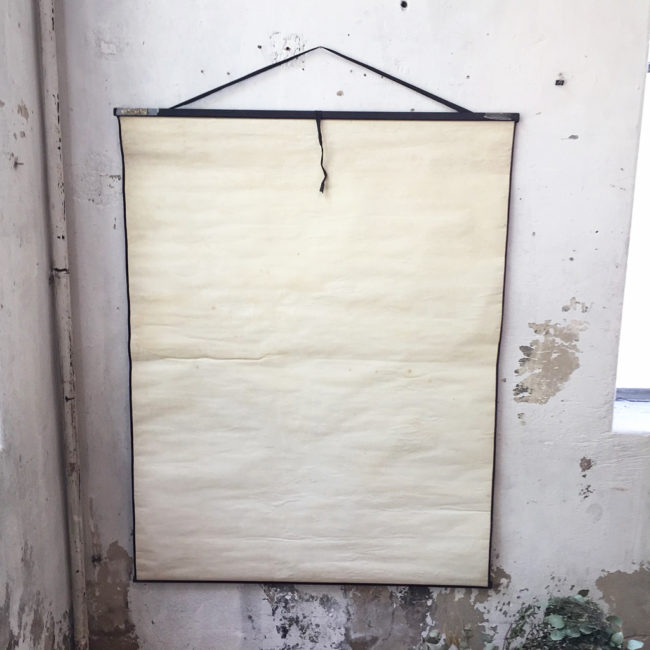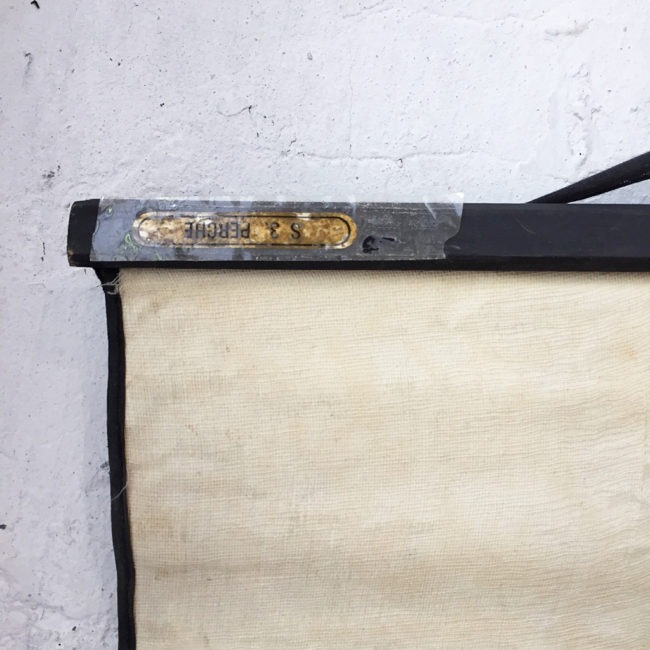 Datée de 1958, l’affiche est sérigraphiée sur papier enduit, entoilé et tenu par deux baguettes en bois noir.