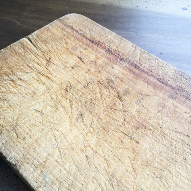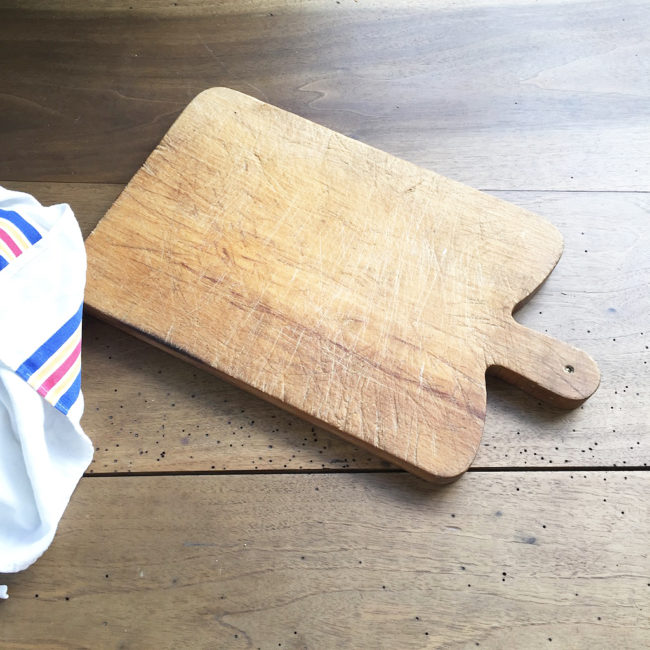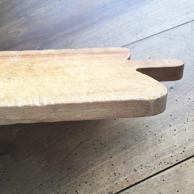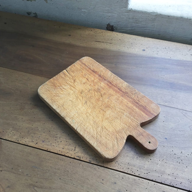 Ancienne planche à découper en bois avec sa anse.