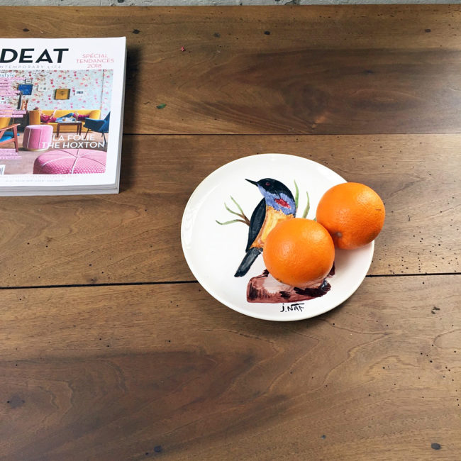 Signée J.Nat, l’assiette pourra aussi bien être utilisée dans la vie de tous les jours au sein de votre cuisine, ou alors sublimée en déco ou au mur.