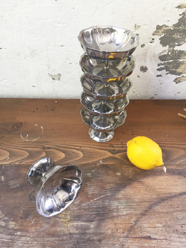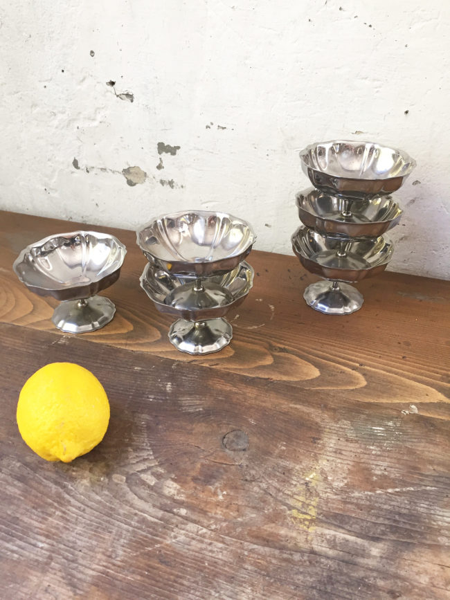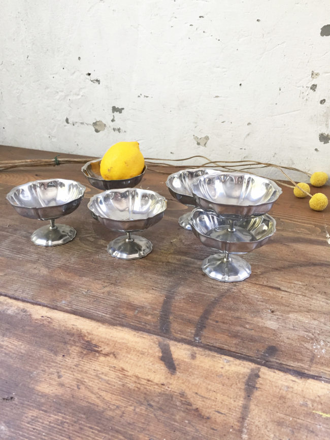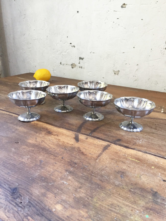 Anciennes coupes à champagne en métal argenté, ou coupe à glace, selon vos besoins.