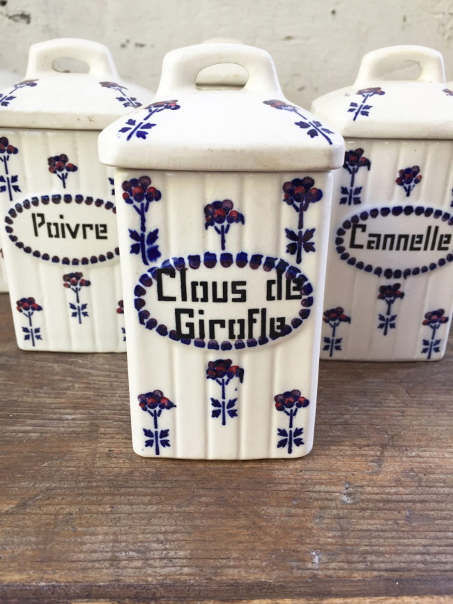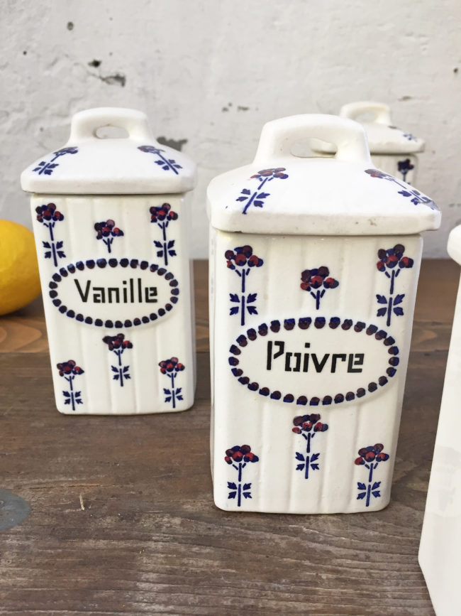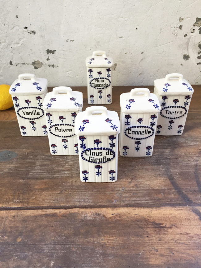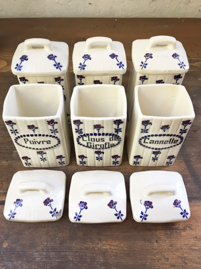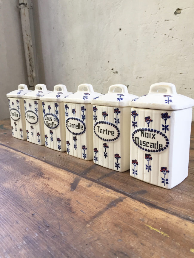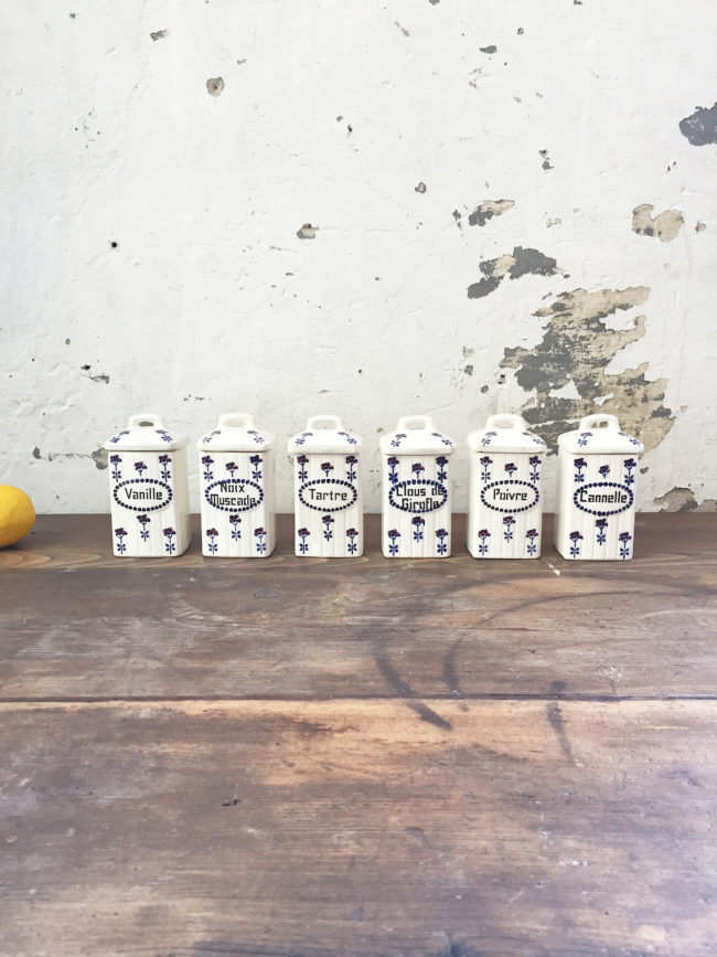 Ancien set en céramique composé de 6 pots à épices.