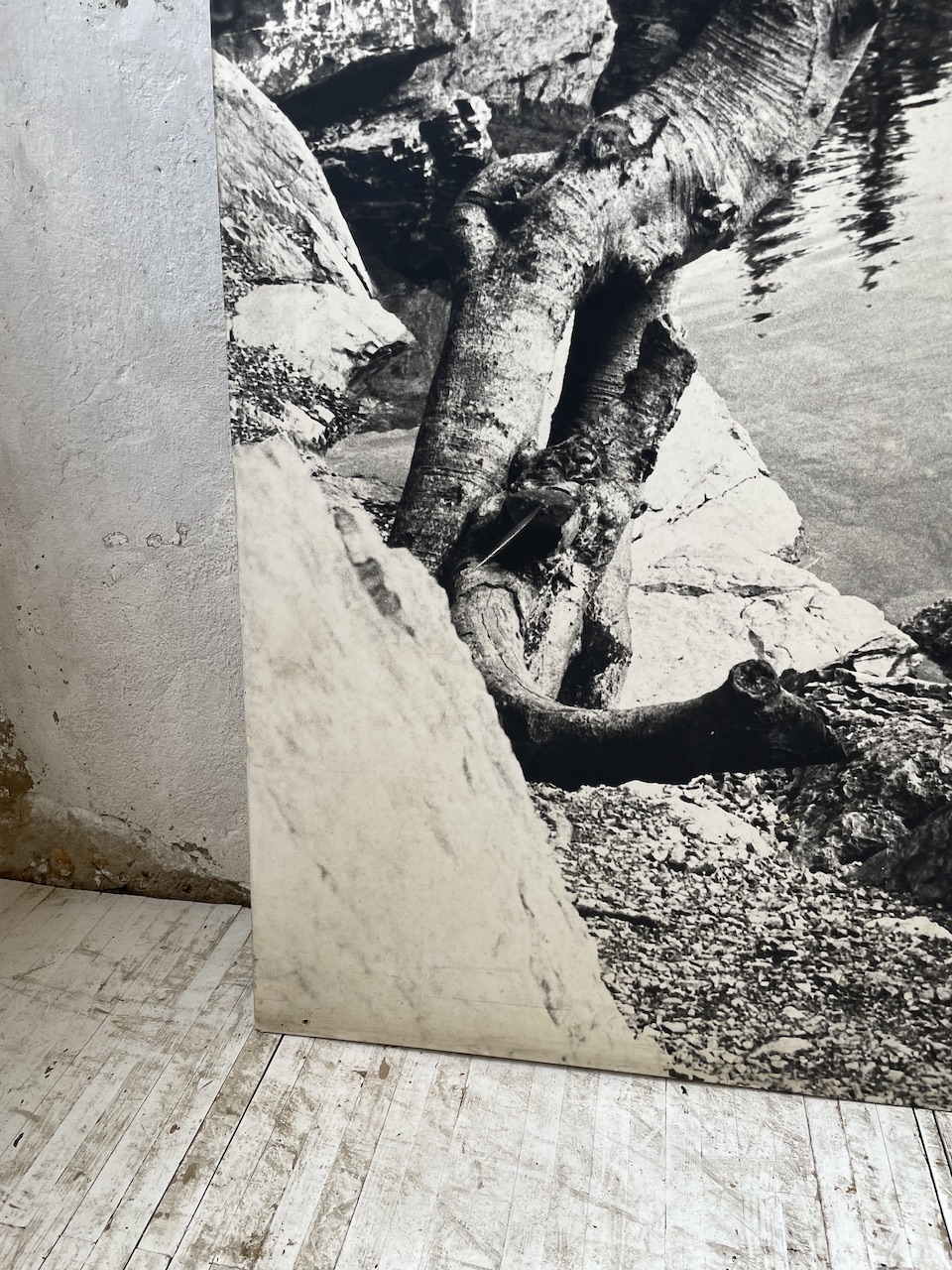 Ancienne très grande photographie imprimée sur papier et entoilée sur un grand support en bois.