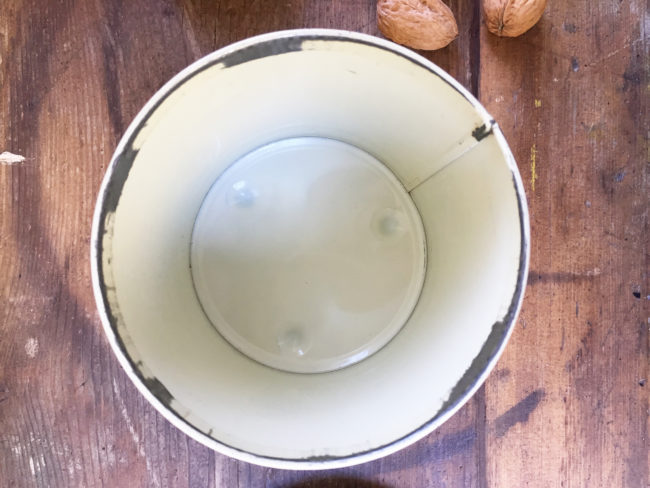L’émail de l’intérieur de la boîte a par endroits disparu.