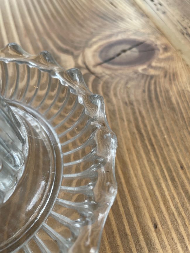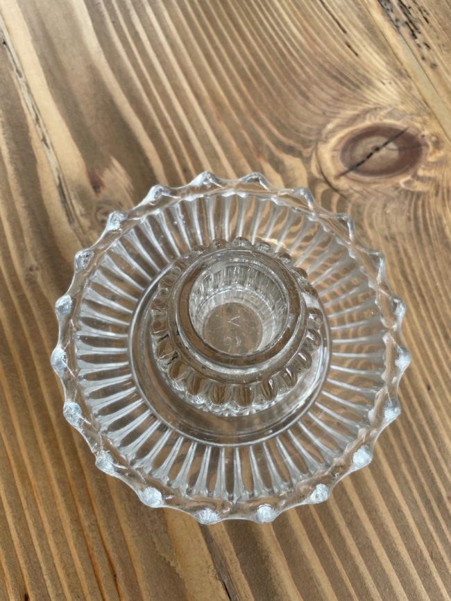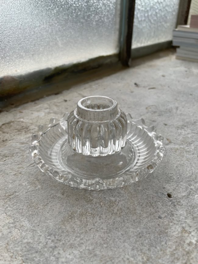 Bougeoirs ancien en verre transparent ciselé, très raffiné.