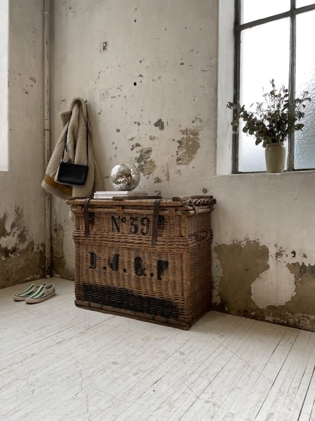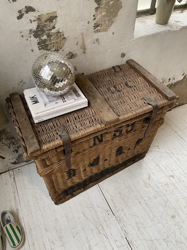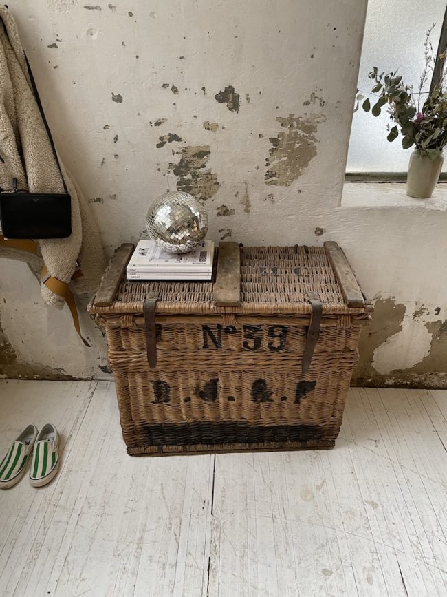Home  /  Boutique  /  décoration, vendus  /  Grande malle osier ancienne XL