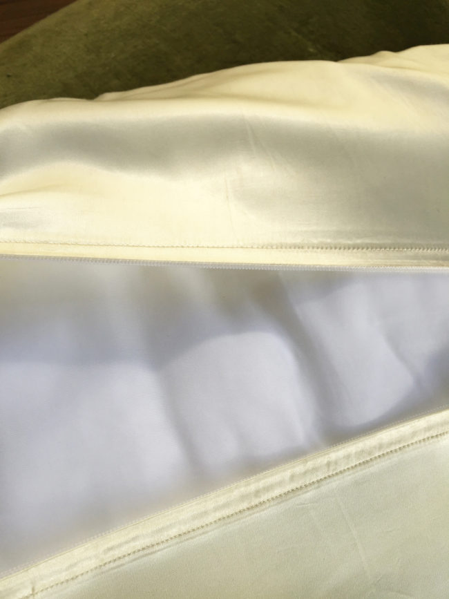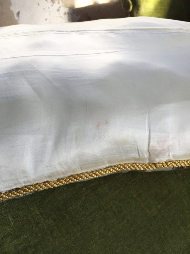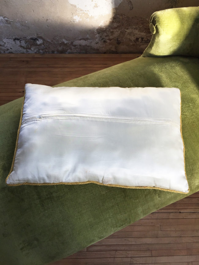 Les coussins possèdent un joli passepoil jaune ainsi qu’une fermeture à l’arrière de ces derniers, pour un passage en lessive aisé.