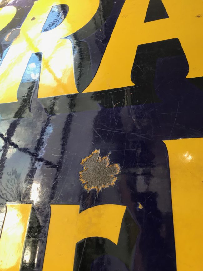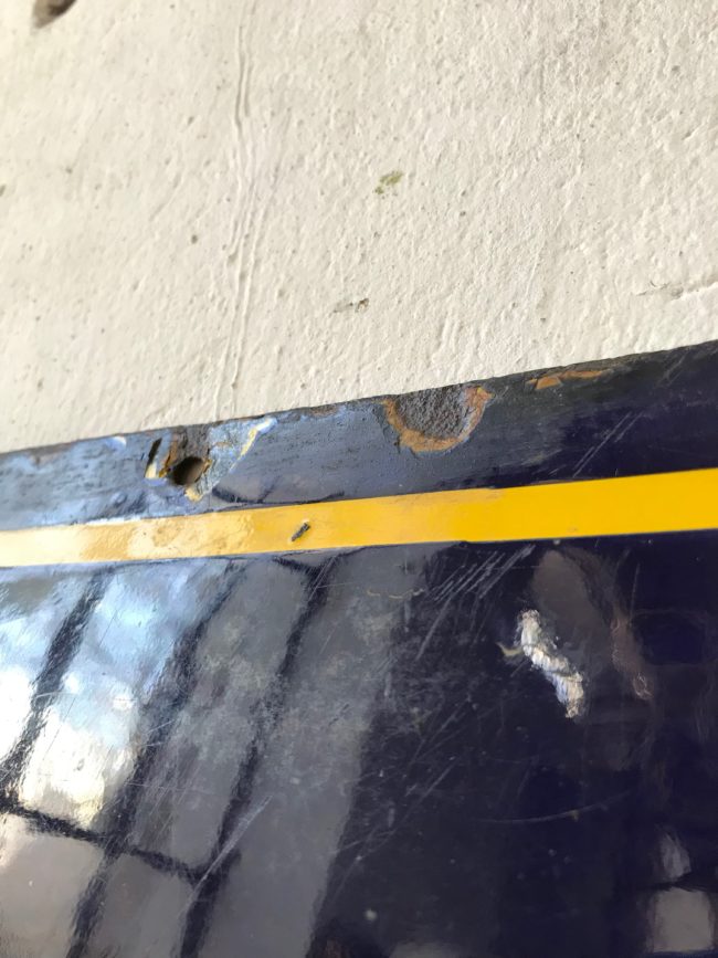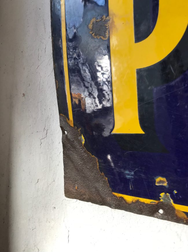 L’émail est abimé par endroits, comme l’indiquent les photos.