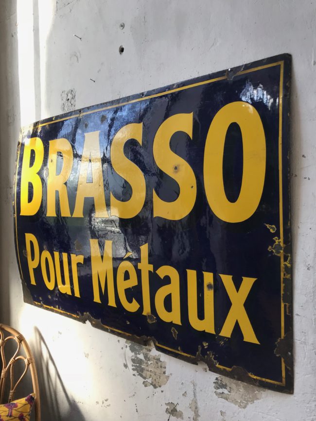 Ancienne plaque émaillée de marque BRASSO, pour métaux vers 1930.