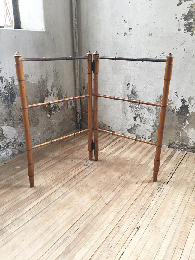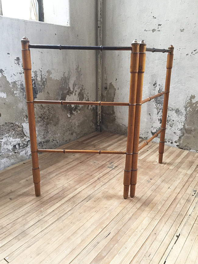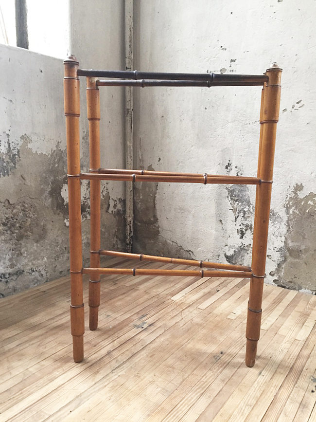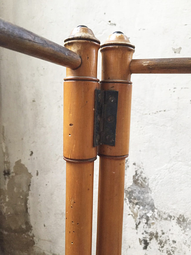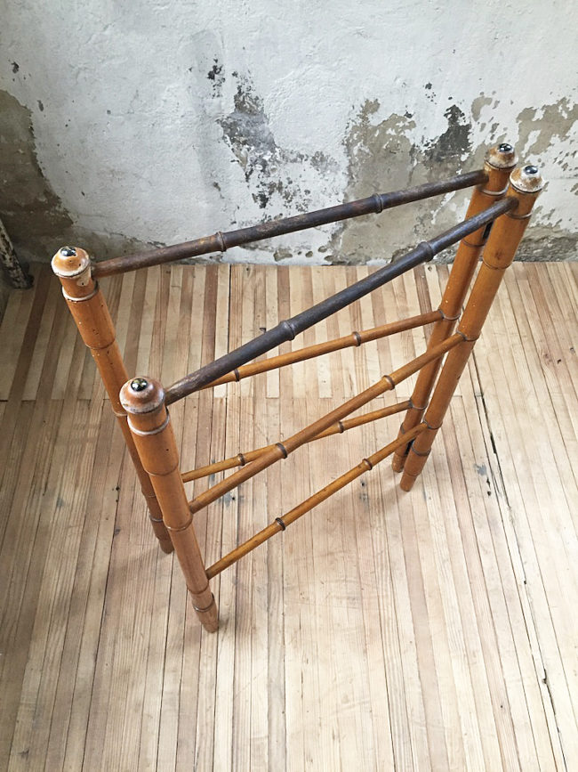 En bois imitation bambou, il se compose de deux structures disposées en échelle, s’articulant entre elles en forme de V.