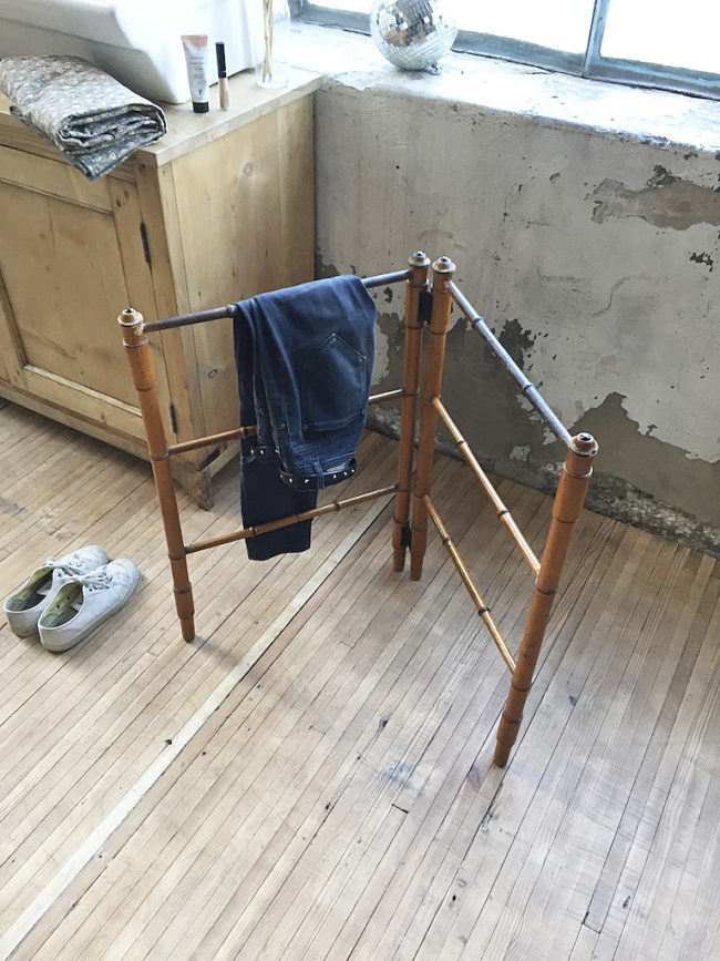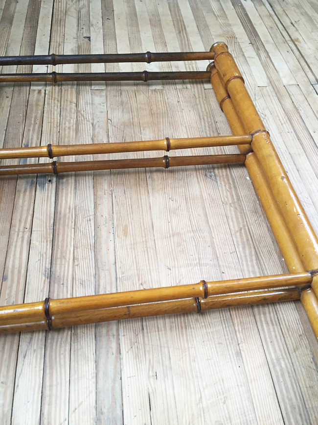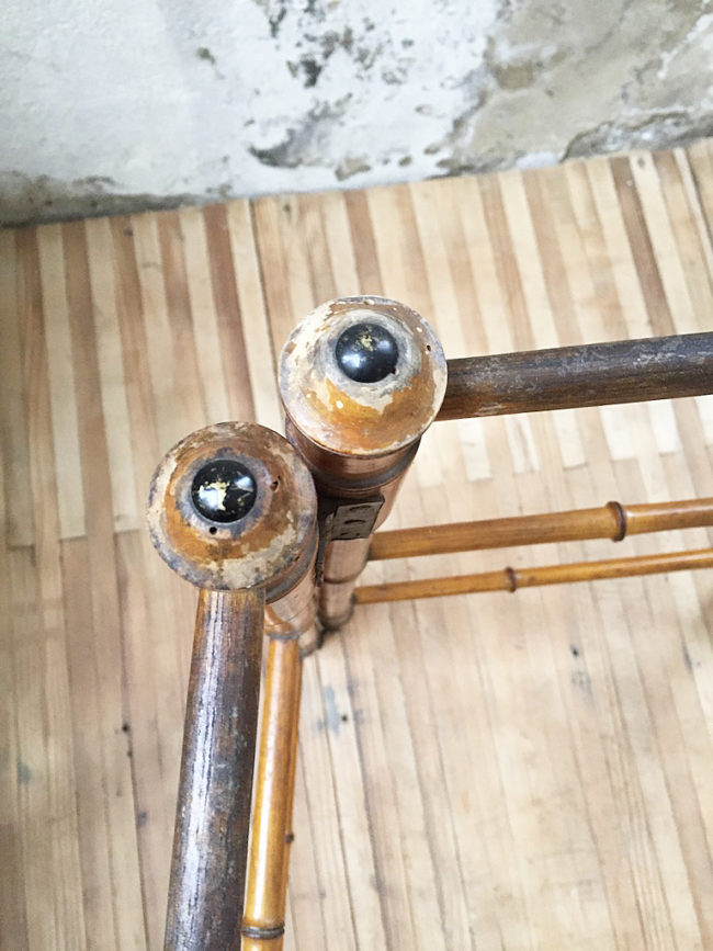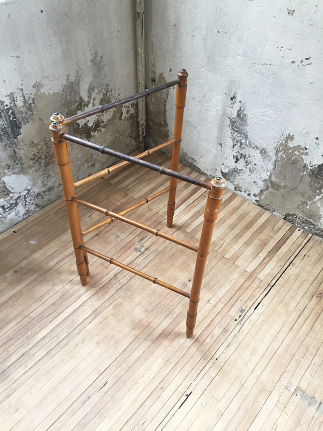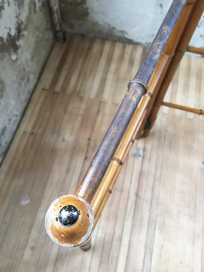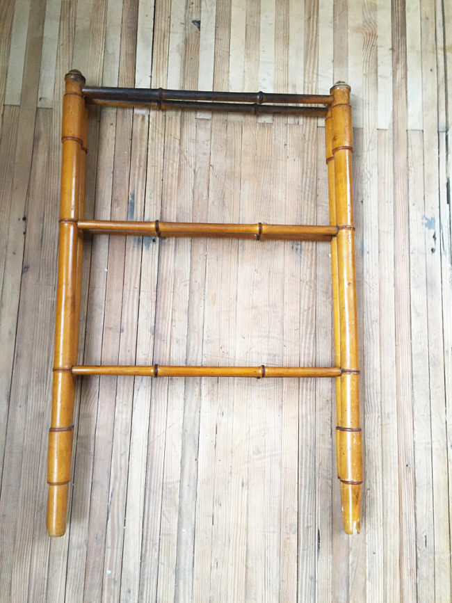 En bois imitation bambou, il se compose de deux structures disposées en échelle, s’articulant entre elles en forme de V.