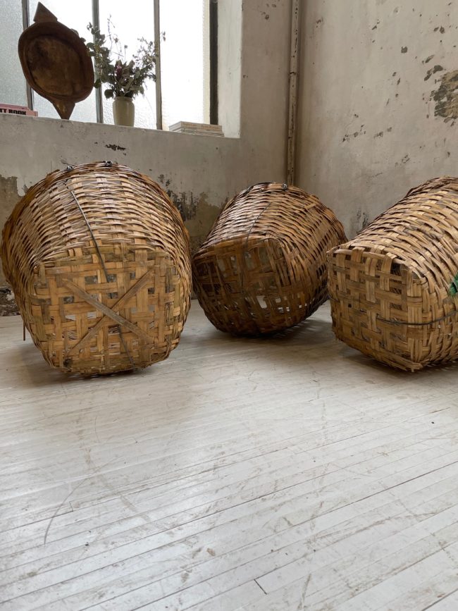 Ces paniers artisanaux possèdent une très belle patine, leur format XL vous permettra de vous en servir aussi bien en bac de rangement, en panier à linge, en panier pour regrouper serviettes sales au bord d’une piscine par exemple…