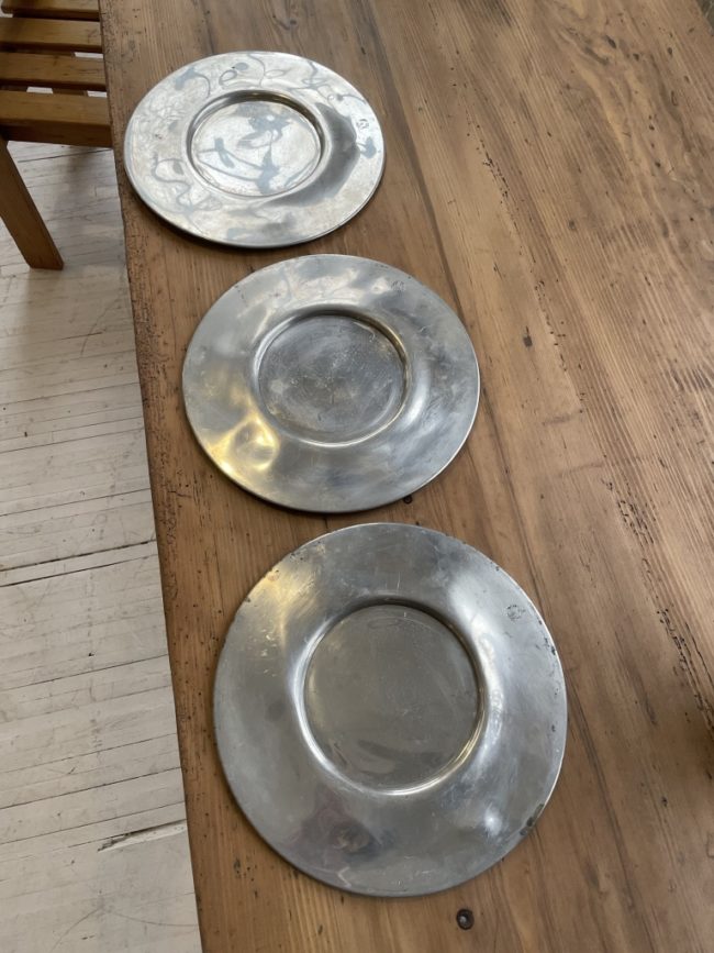 Home  /  Boutique  /  cuisine, décoration, vendus  /  Set 3 assiettes étain argent