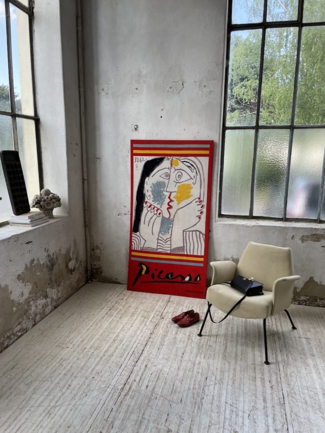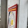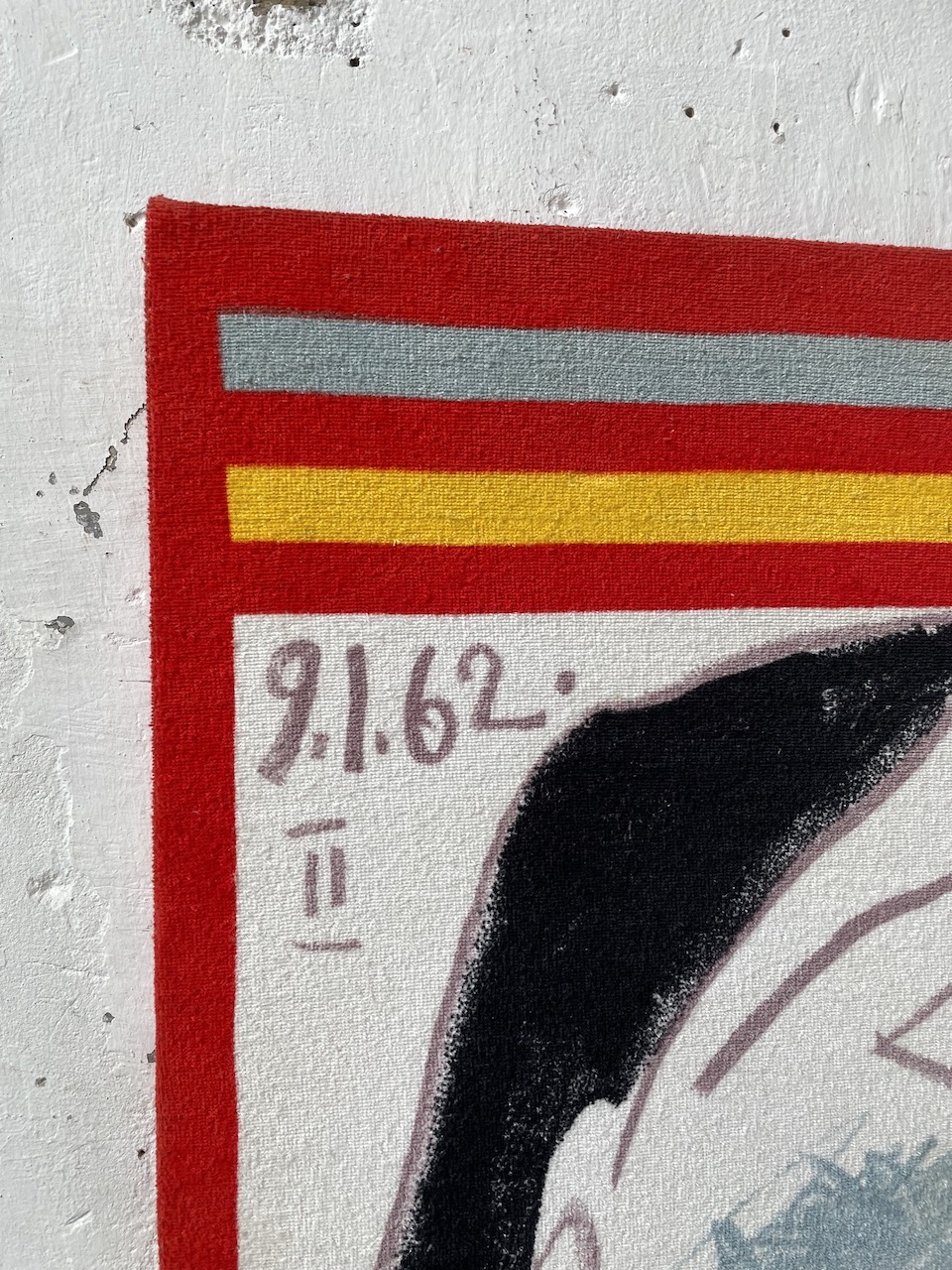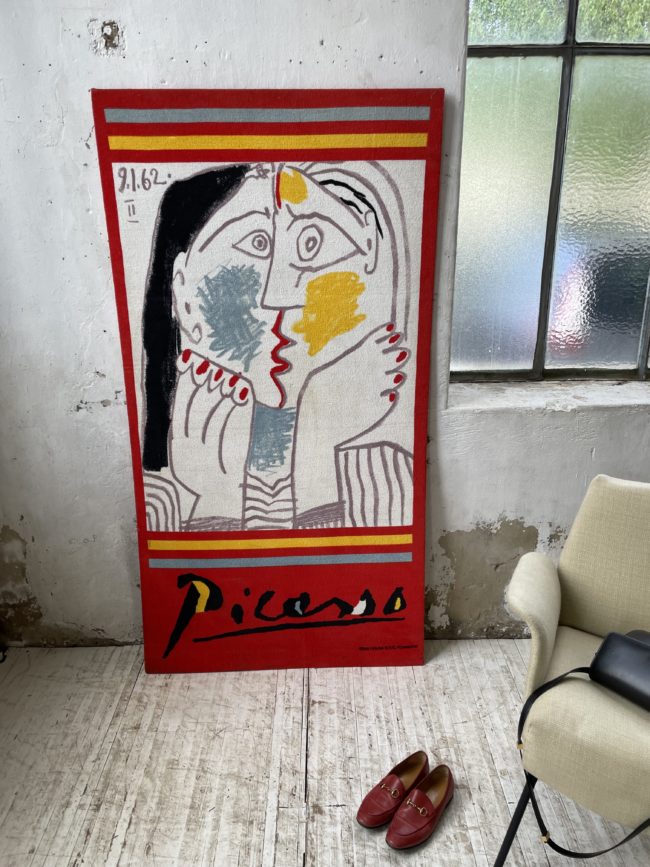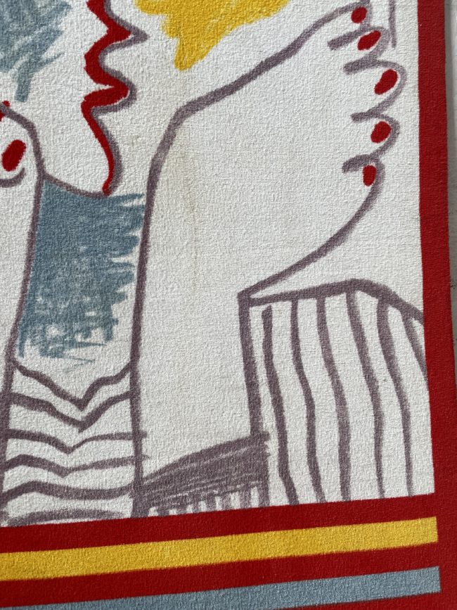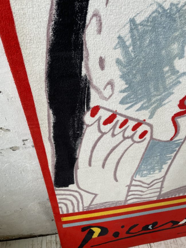 Ancien tissu/serviette entoilé sur support bois de format XXL, issue d’une exposition de Picasso aux Etats-Unis.
