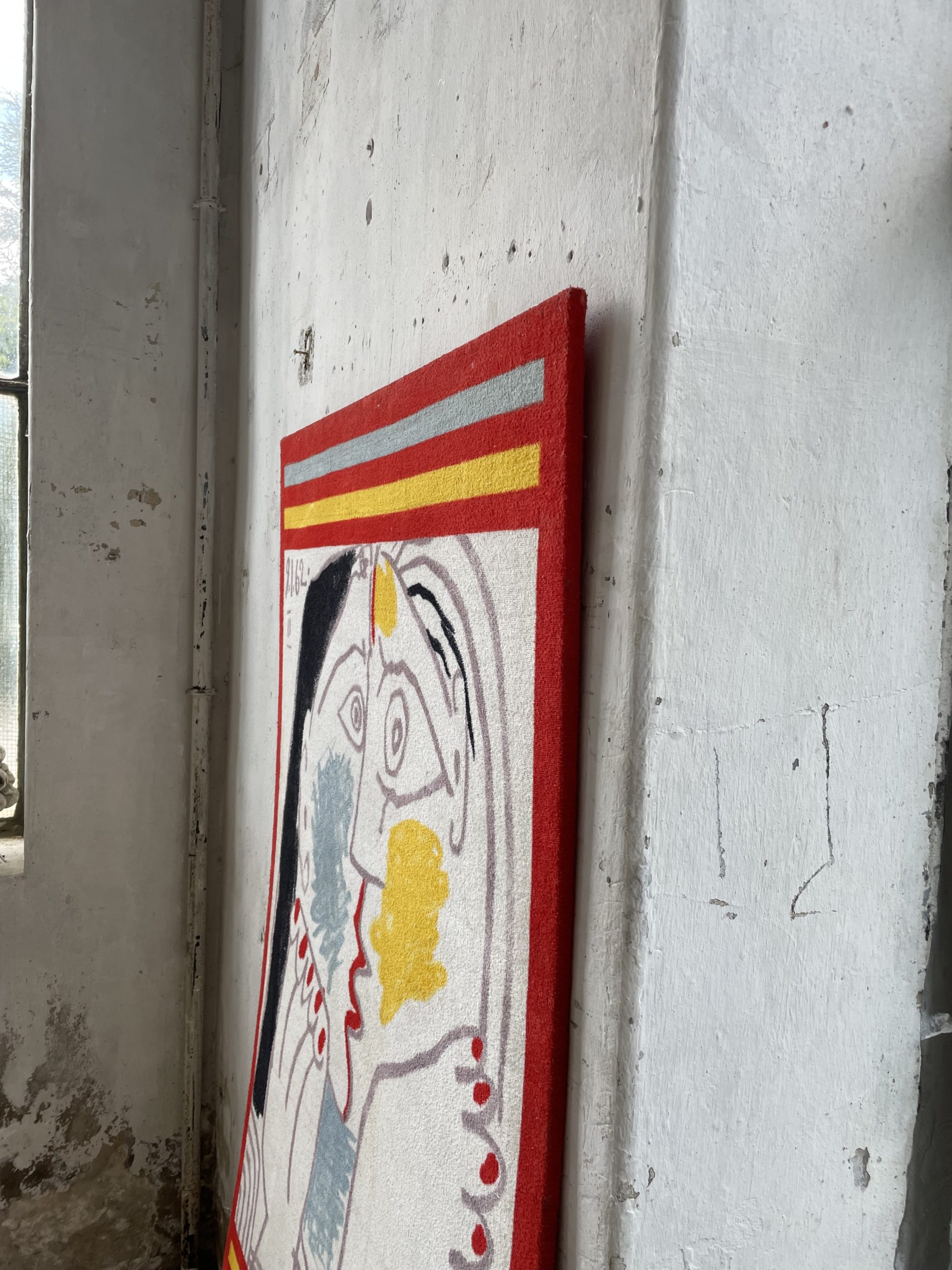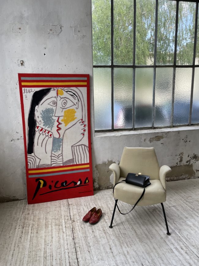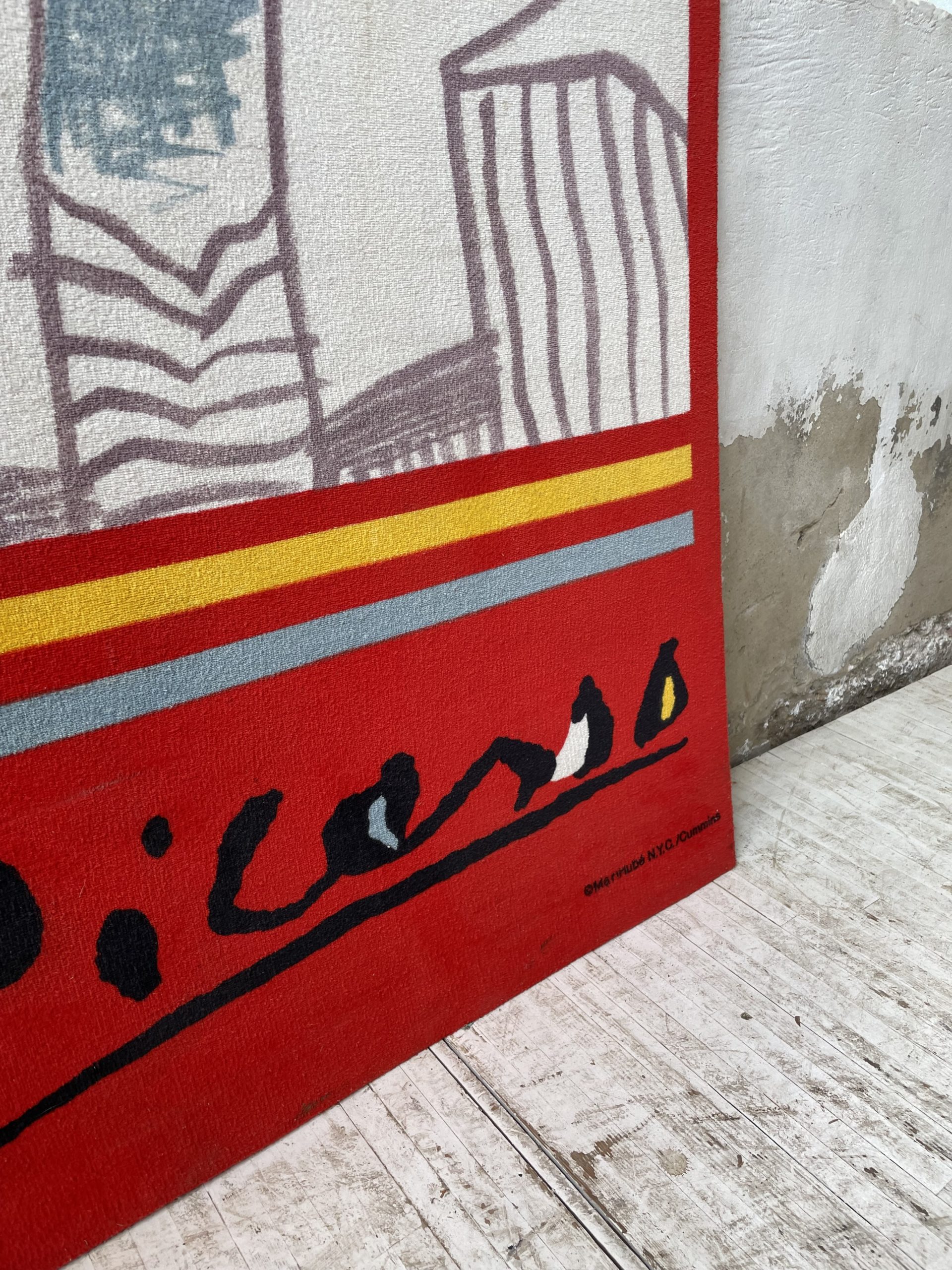 Ancien tissu/serviette entoilé sur support bois de format XXL, issue d’une exposition de Picasso aux Etats-Unis.
