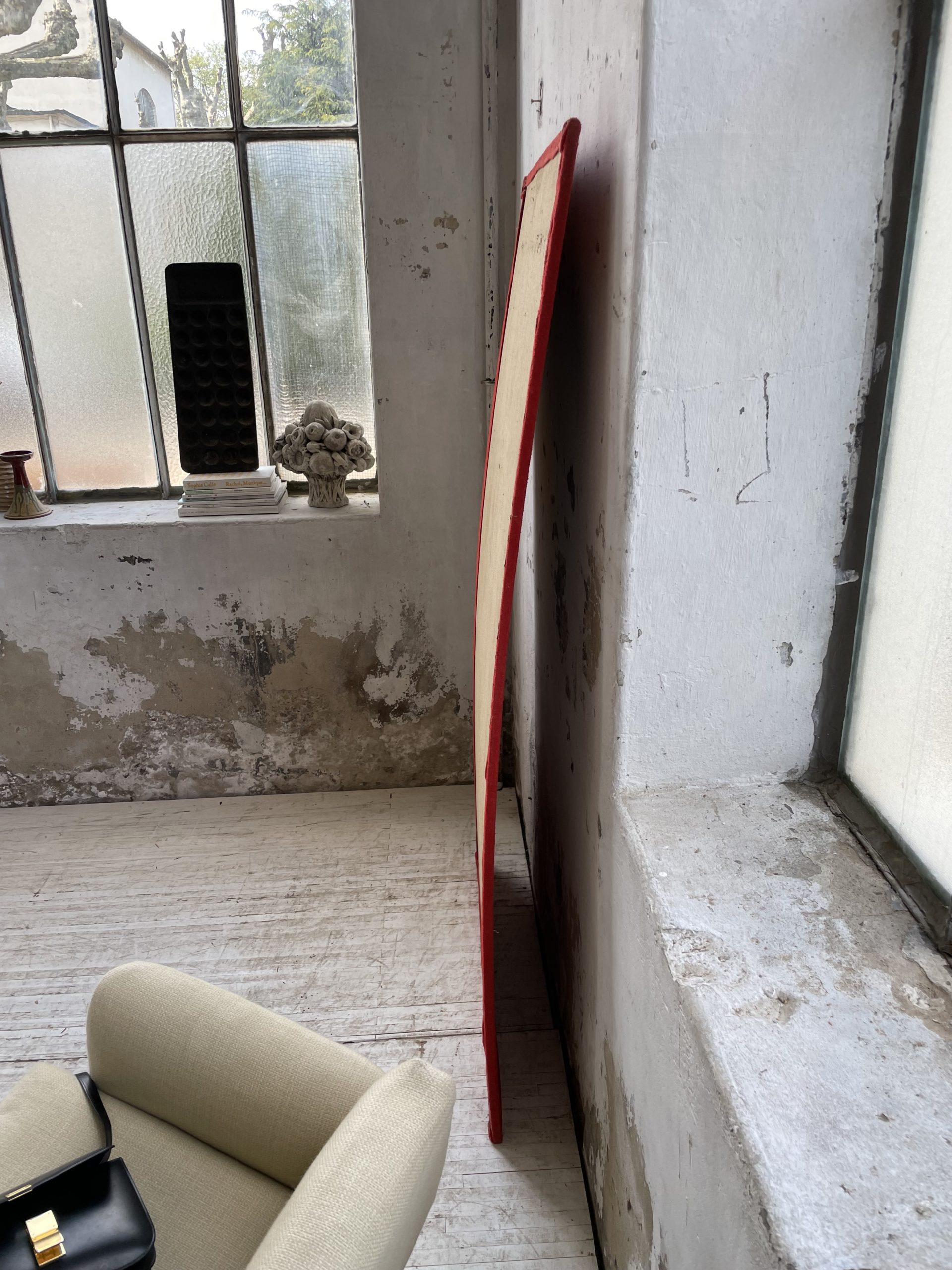 Le tissu possède un aspect éponge. Attention on peut noter que le bois a légèrement cintré dans le temps, comme l’attestent les photos.