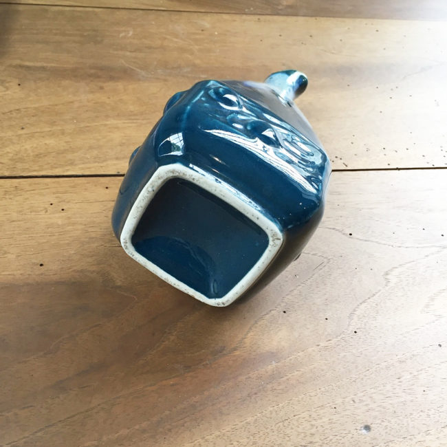 Ancien vase ou pichet en céramique dans différentes tonalités de bleus.