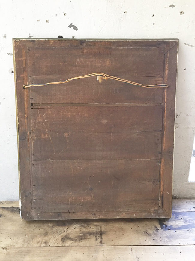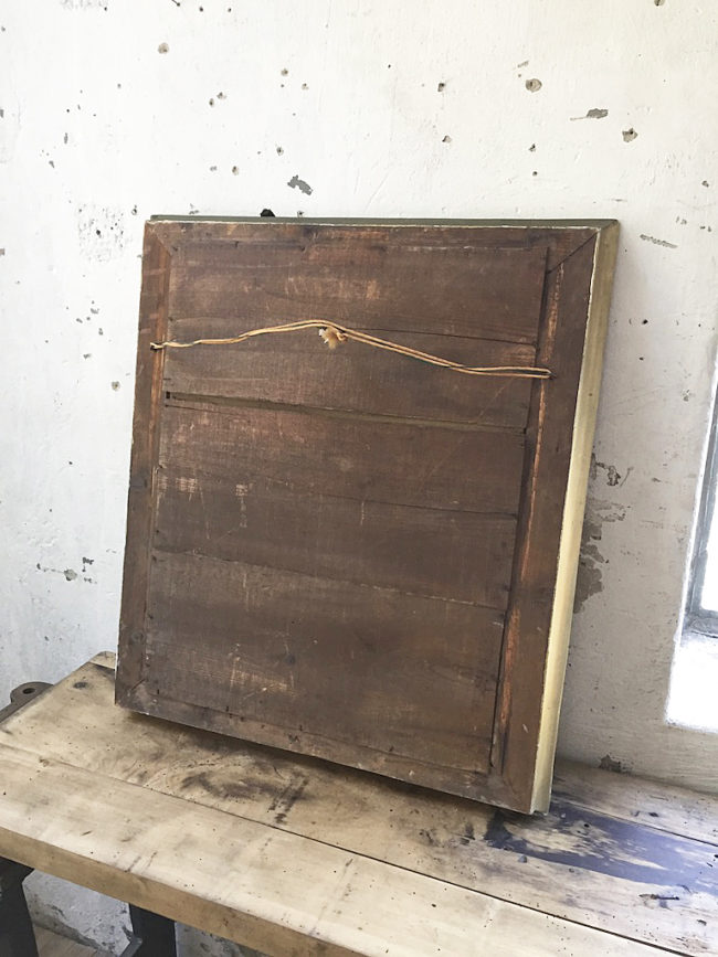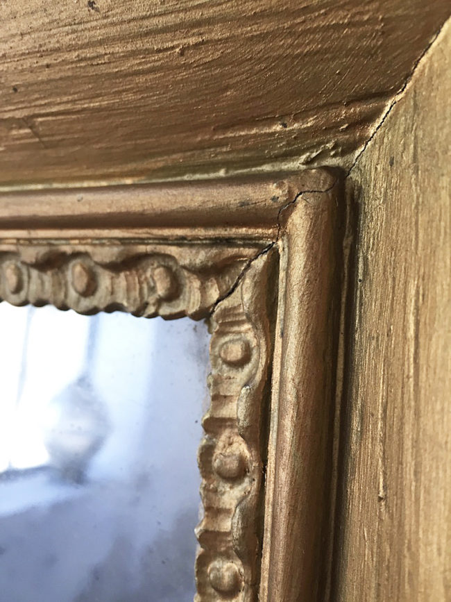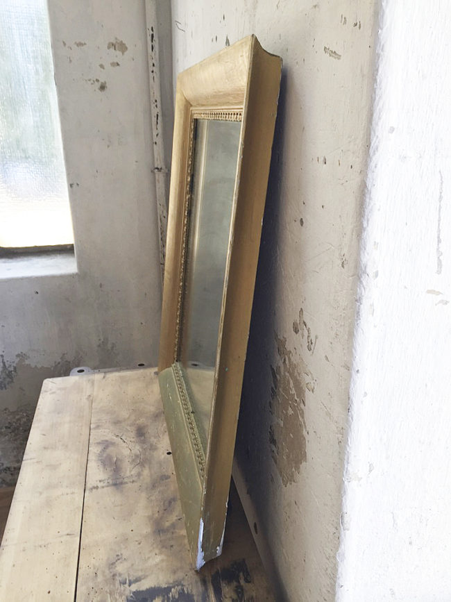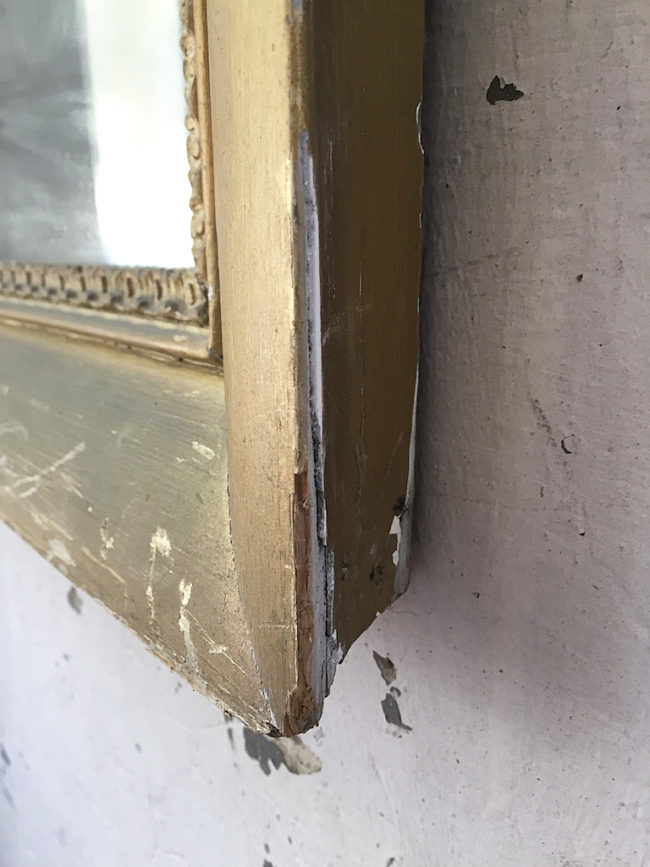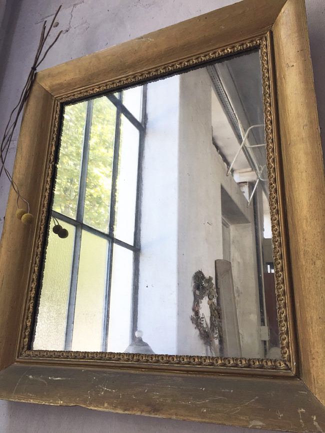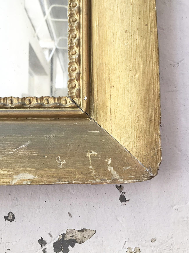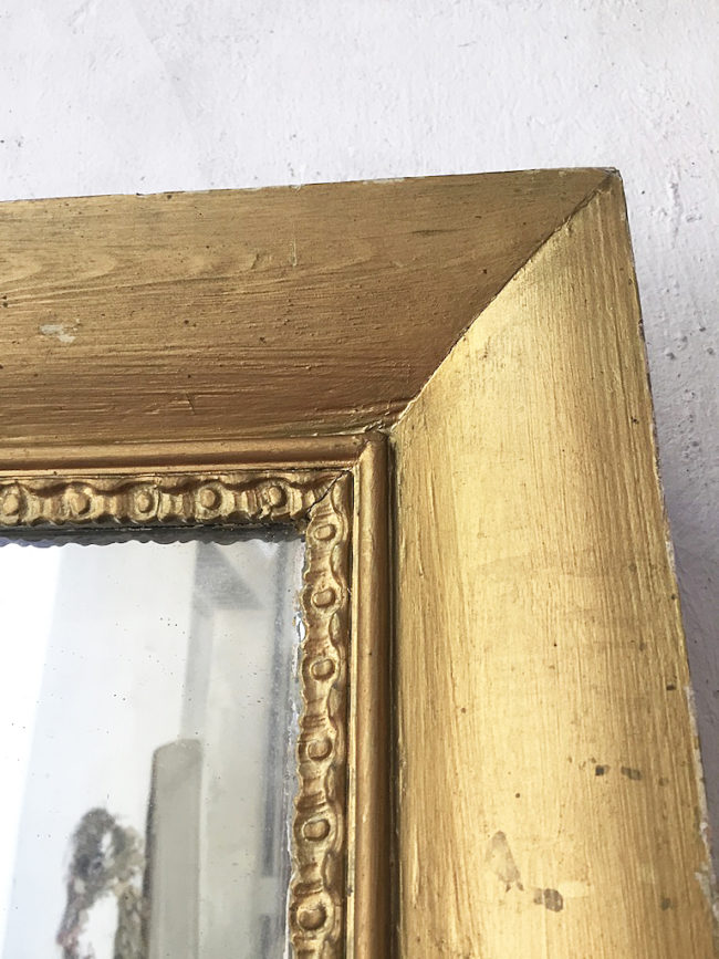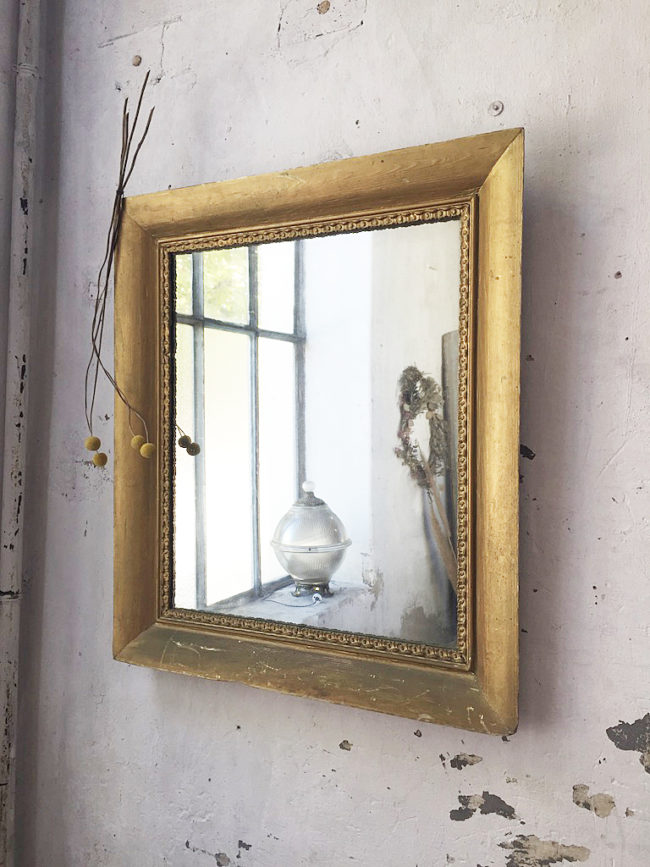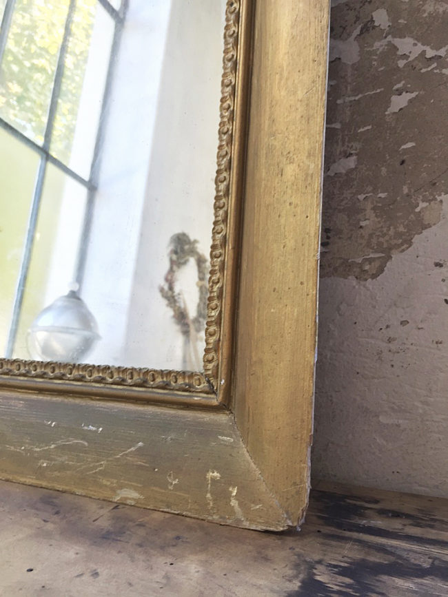 En bon état d’usage, le miroir au mercure épais est piqué par endroits.