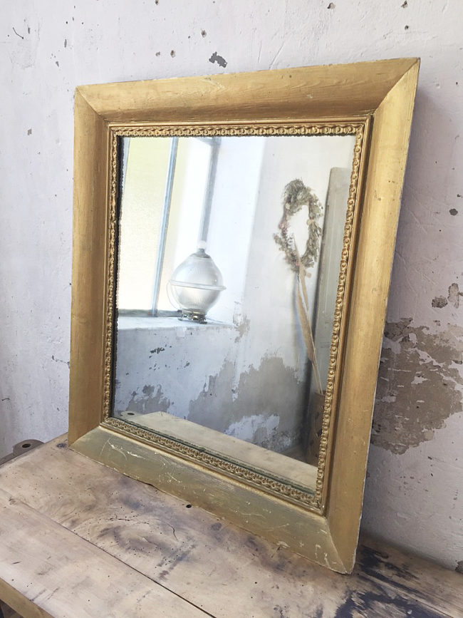 Ancien miroir avec cadre doré de forme rectangulaire.