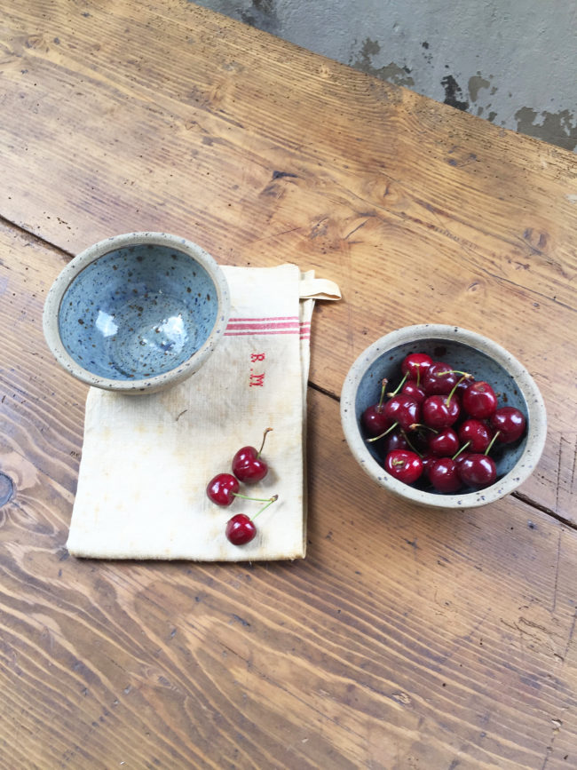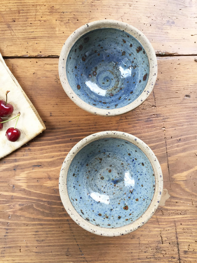 On aime le contraste entre le bleu émaillé à l’intérieur du bol et l’extérieur brut non émaillé.