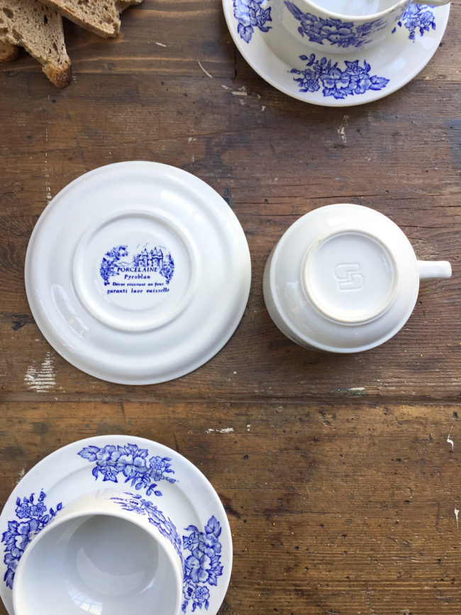 En porcelaine vitrifiée, elles possèdent un motif fleuri bleu.