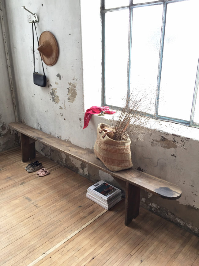 Ce banc ancien sera aussi bien installé dans une entrée ou utilisé autour d’une grande tablée.