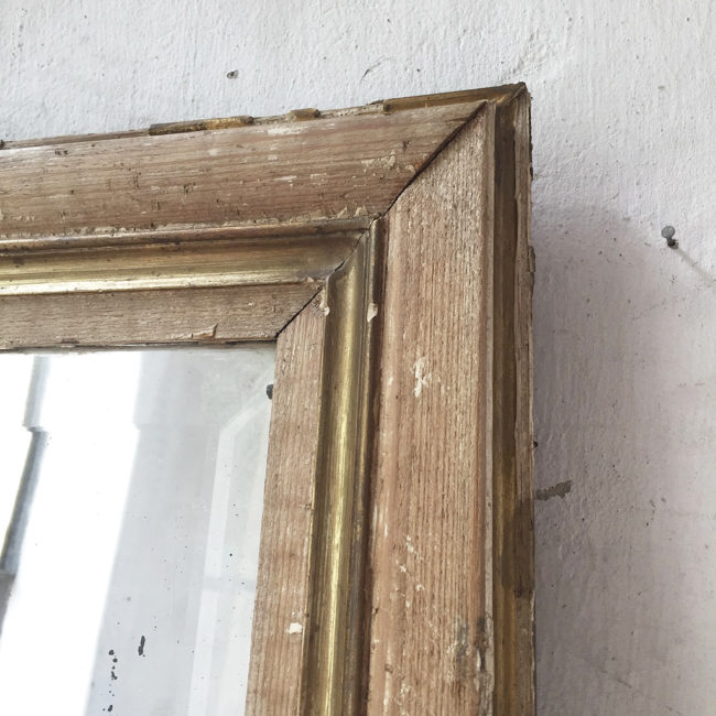 Ancien miroir Napoléon avec son cadre en bois et ses détails dorés.