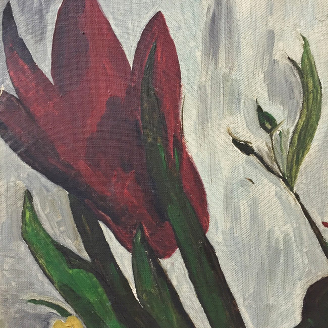 ancienne toile huile fleurs