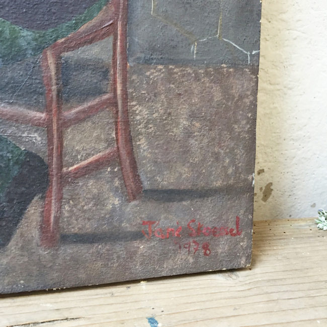 Ancienne peinture à l’huile sur support bois, signée Stoenel 1978.