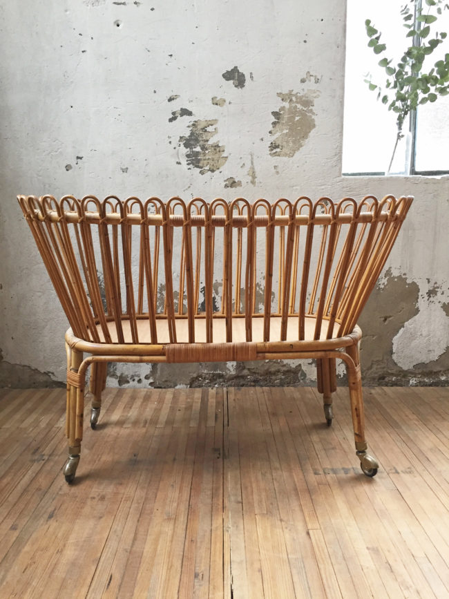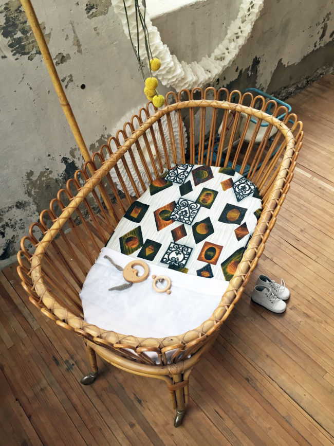 Adorable lit vintage pour bébé en rotin.