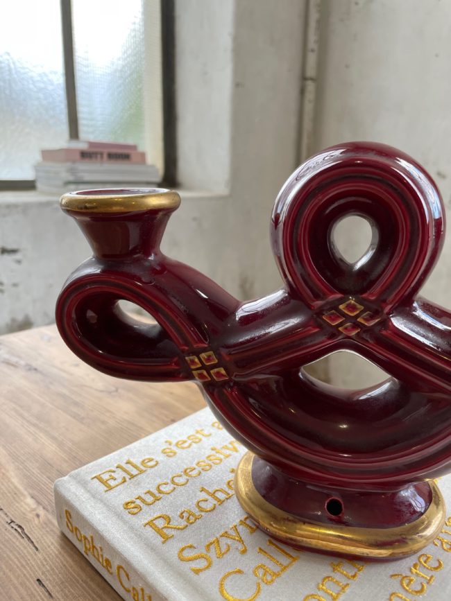 Home  /  Boutique  /  vendus  /  Bougeoir céramique rouge bordeaux Vallauris vintage