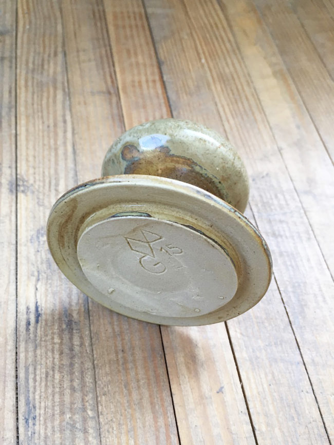 Petit pique-bougie en céramique émaillé dans les tons beige-grès.