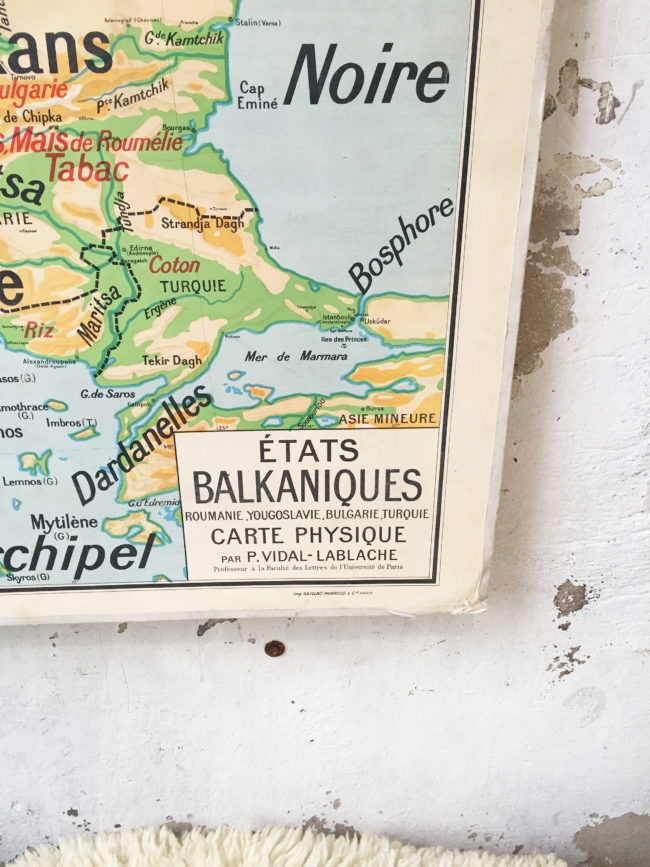 Représentant les États Balkaniques, cette carte, recto-verso de très grande dimension, est très robuste puisque sur papier cartonné épais. Elle possède deux oeillets afin de pouvoir la fixer au mur.