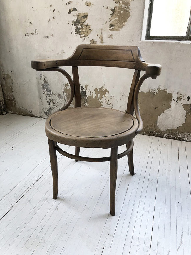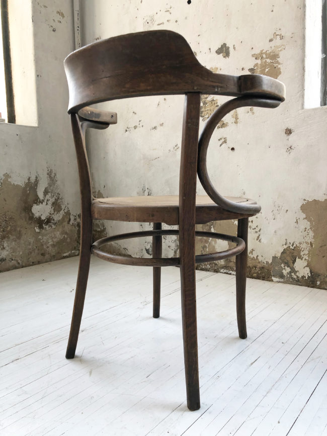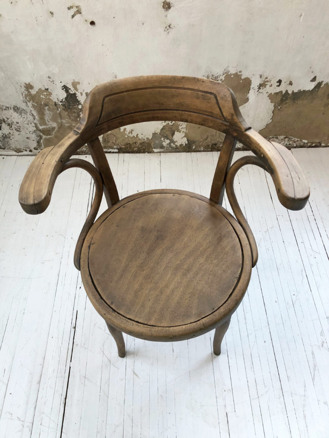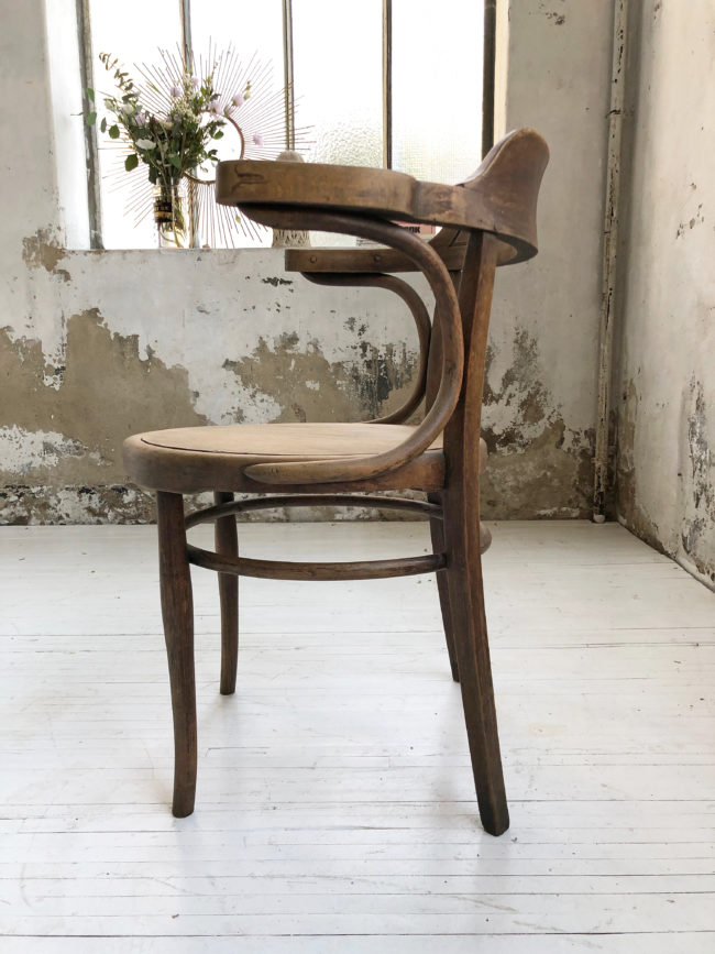 Ancienne chaise avec accoudoirs de marque Mundus, concurrent de Thonet, fabricant du même style de fauteuils. Période de fabrication en ölogne 1890/1910.