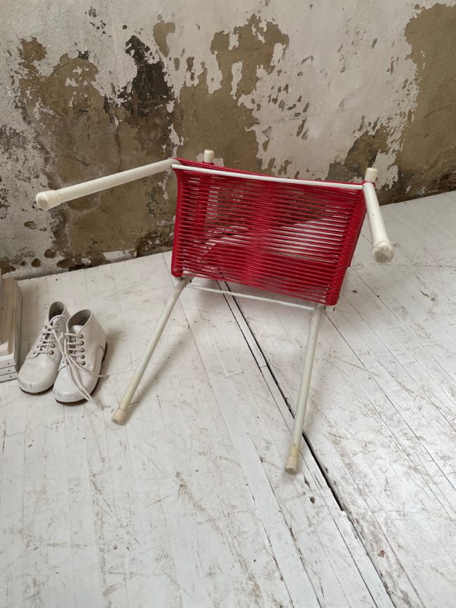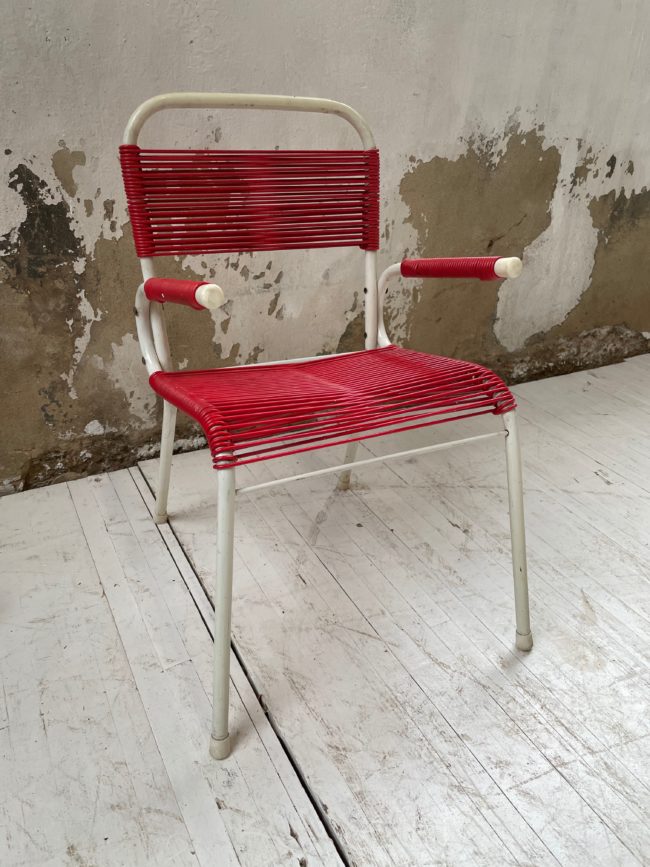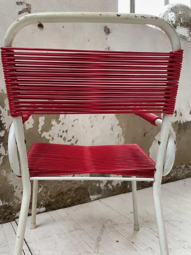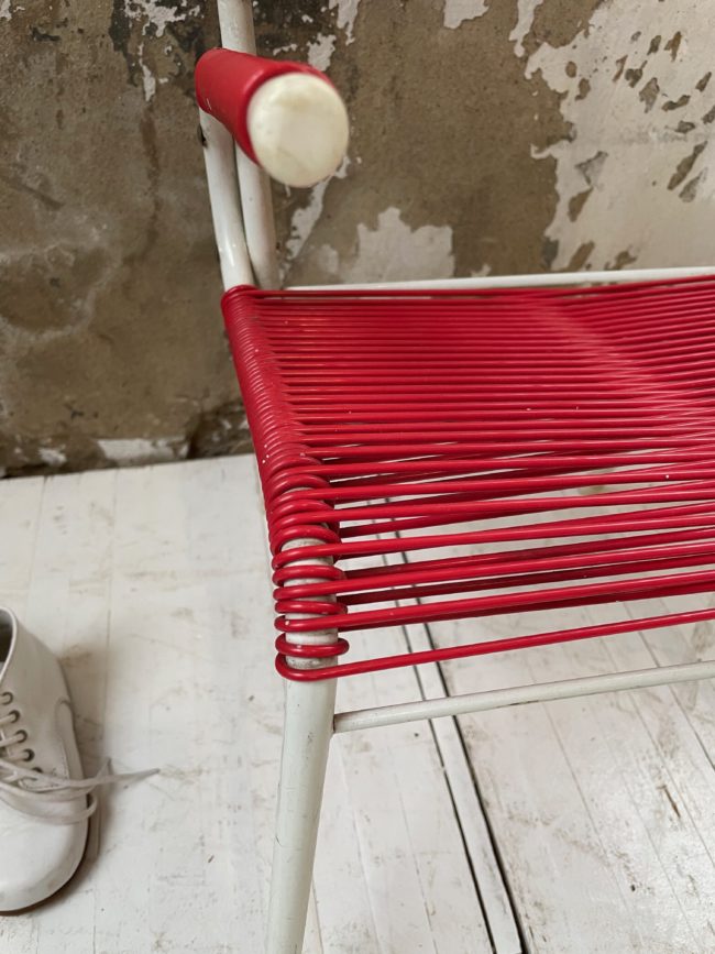 Home  /  Boutique  /  vendus  /  Chaise enfant scoubidou rouge vintage