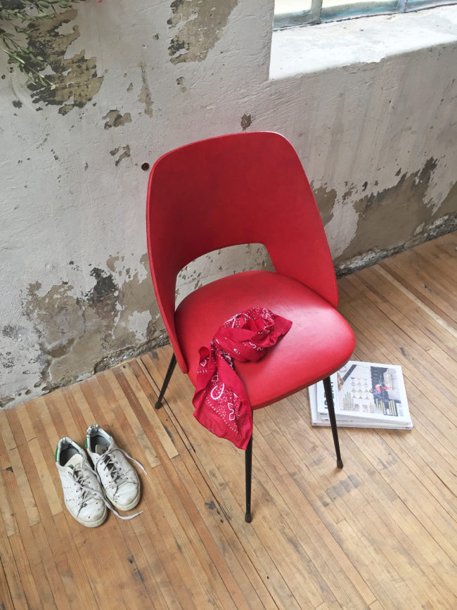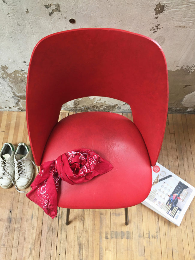 Le skai rouge présente des infimes traces d’usure, l’assise en mousse est très confortable.