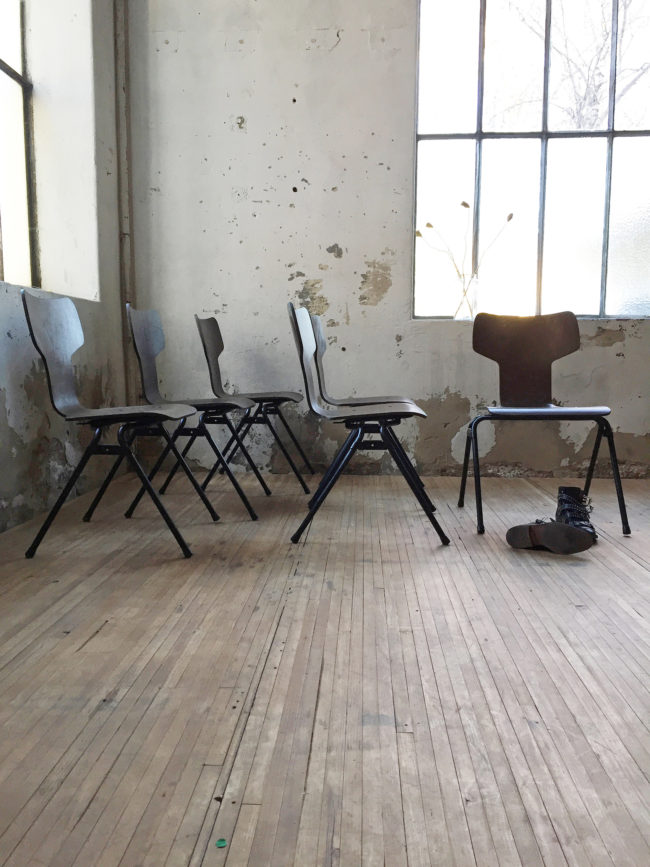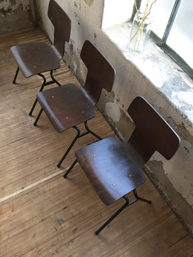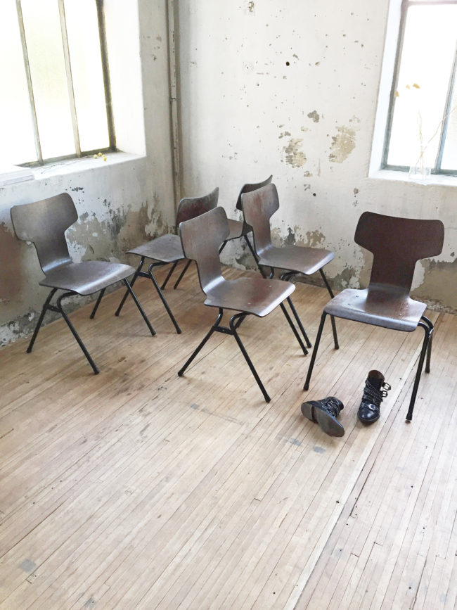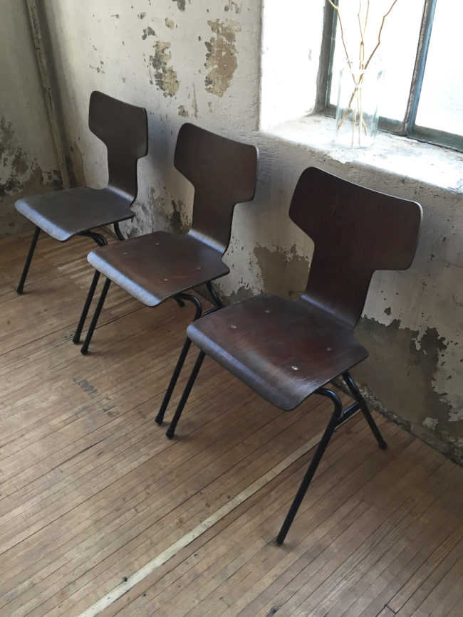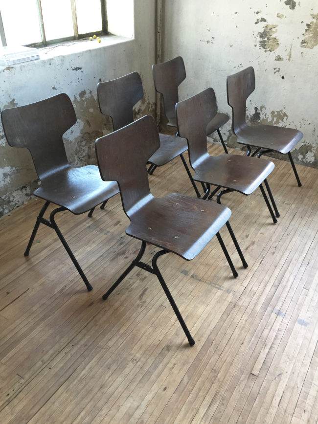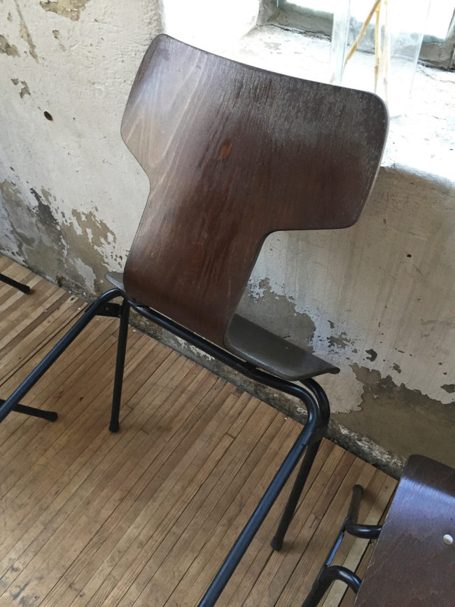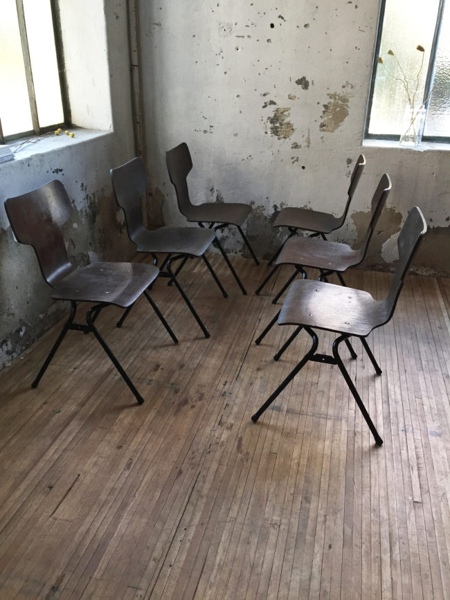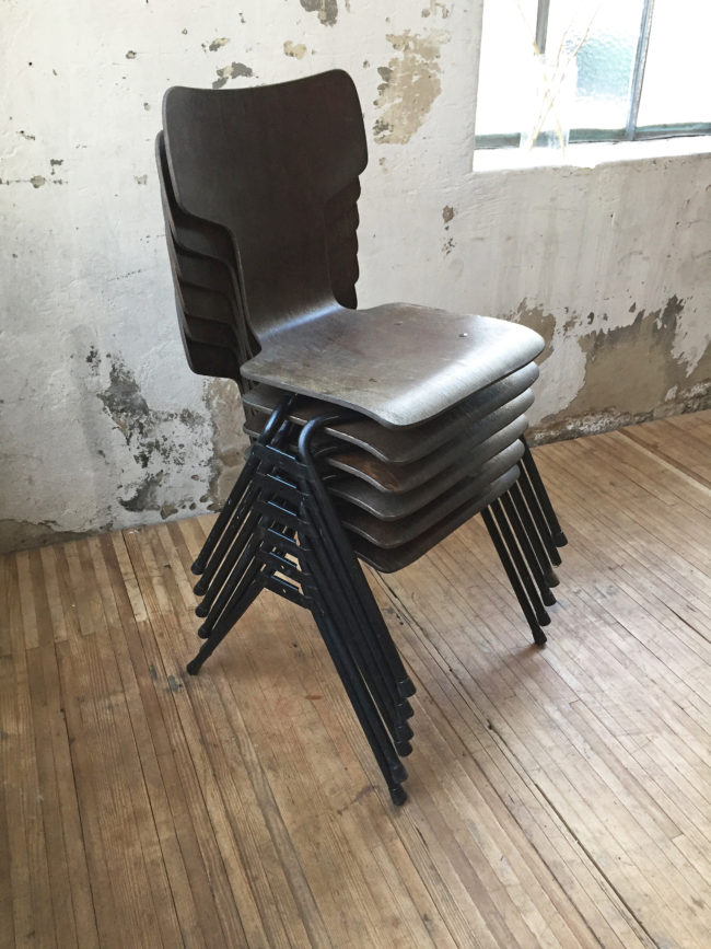 Les chaises possèdent des signes d’usure, conformes à leur âge. Empilables.