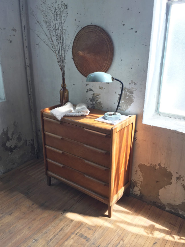 Commode vintage des années 60 en bois clair, au look scandinave.
