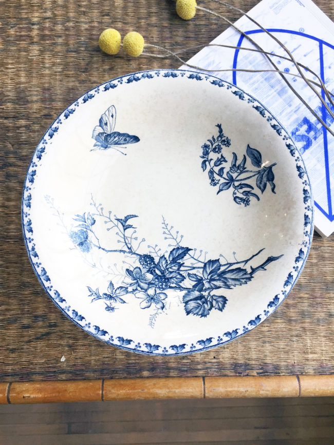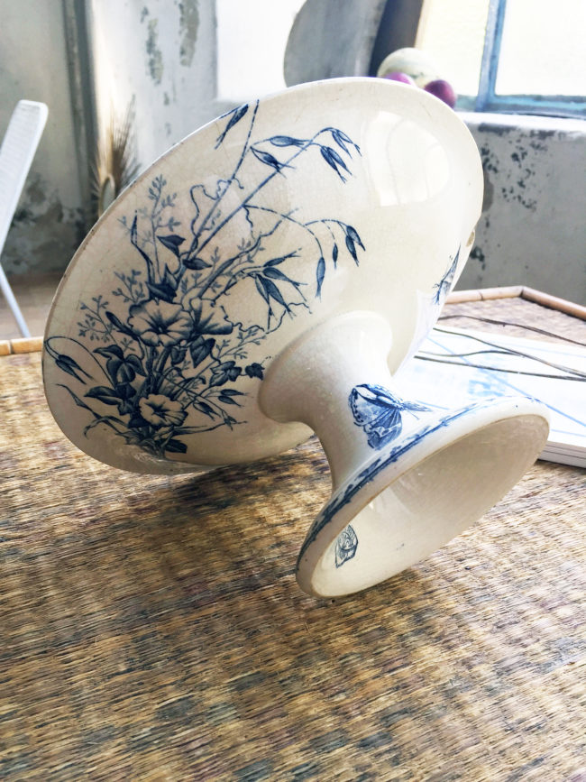Avec ses motifs bleus représentant des branches de mûres et papillons, ce compotier Terre de Fer, modèle Carmen, sera parfait en déco dans votre cuisine, pour accueillir fruits et légumes ou gâteaux.
