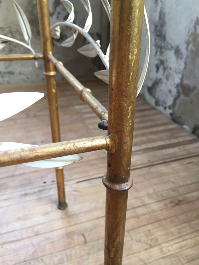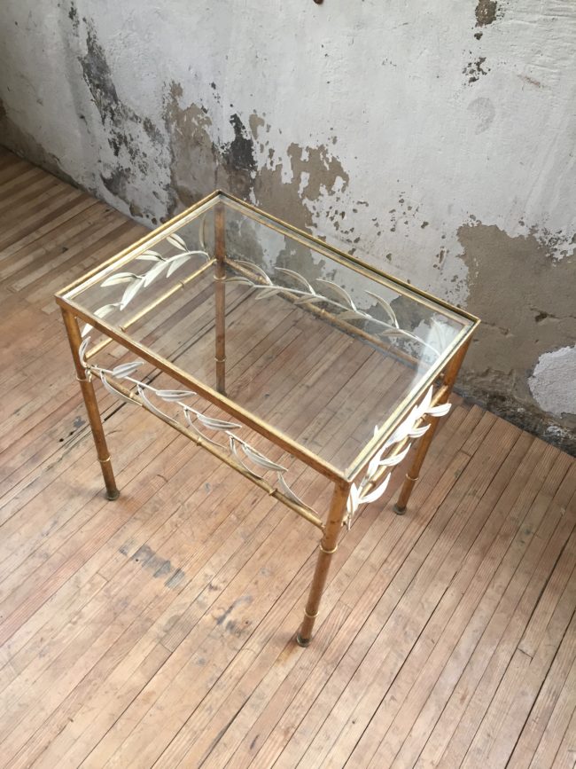 Petite console ou table d’appoint en bronze doré et détails feuilles blanches laquées.