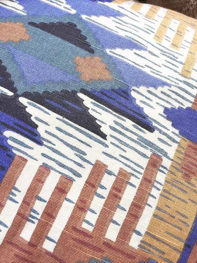 Housse de coussin réalisé avec un tissu ancien. Le tissu est épais avec de jolis motifs graphiques. La garniture est fournie avec.