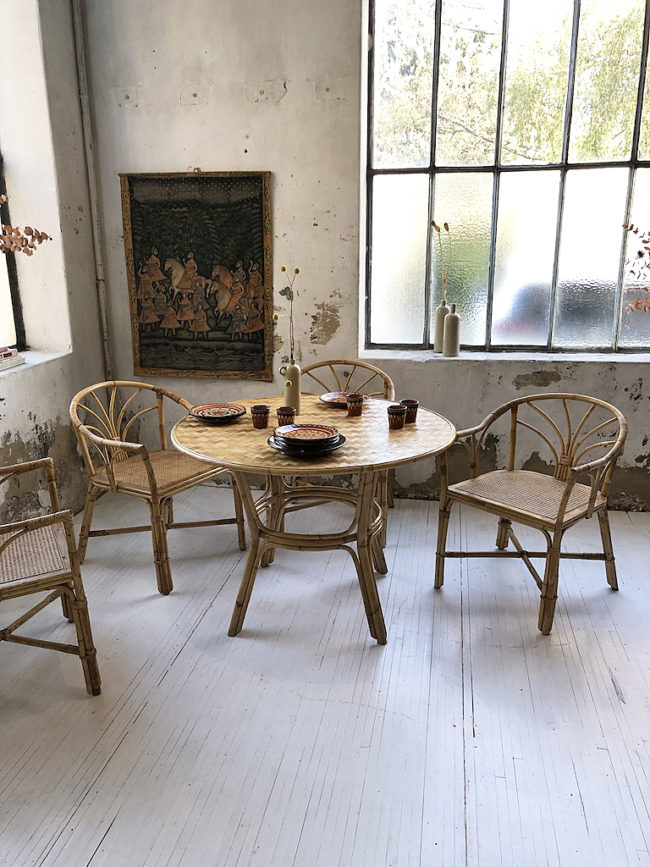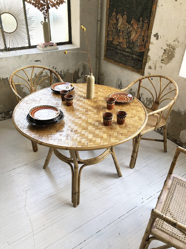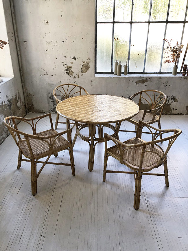 Home  /  Boutique  /  tables, vendus  /  table et 4 chaises rotin cannage