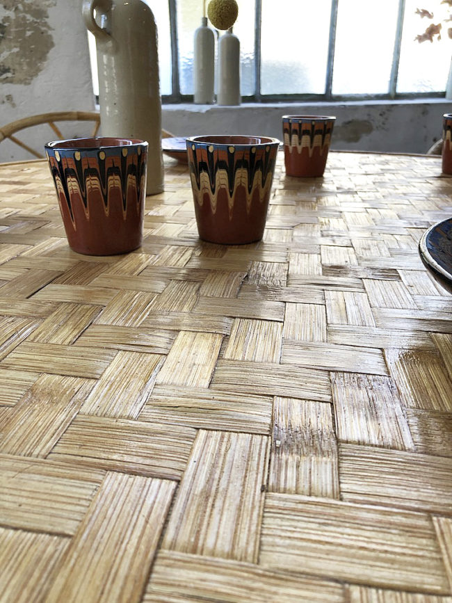 Tressage sur le plateau de la table apportant la touche graphique et raffinée.