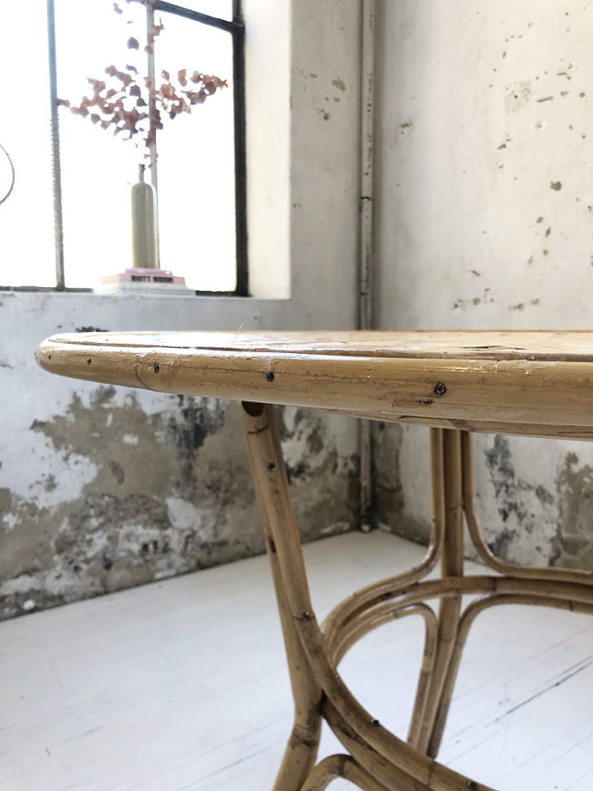 L’ensemble a entièrement été restauré et protégé à l’aide d’une produit adapté au rotin, apportant la touche de brillance.