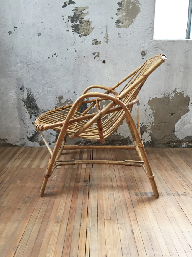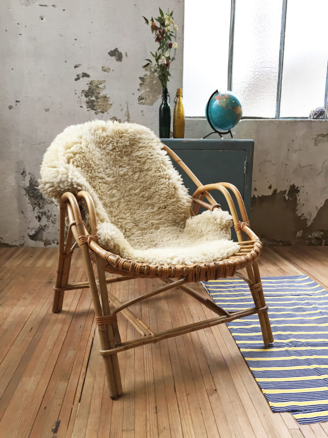 Indémodable fauteuil coquille en rotin vintage.