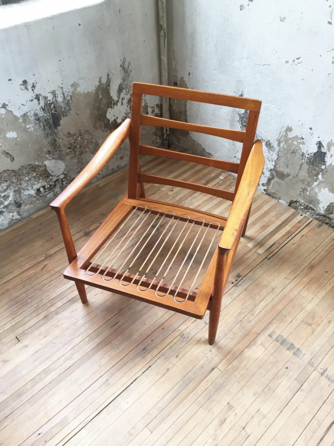 Vous pourrez donc soit glisser un coussin au niveau du dossier, ou lui prévoir de nouveaux coussins d’assise, avec le tissu de votre choix.