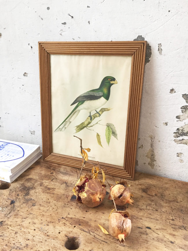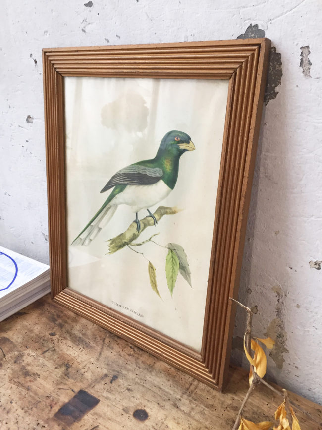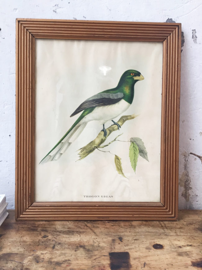 Ancienne lithographiée encadrée d’origine, représentant un oiseau « trognon Gigas ».