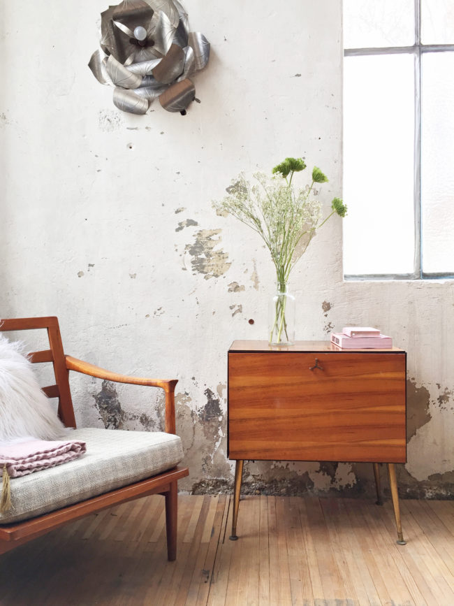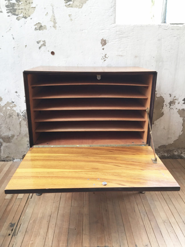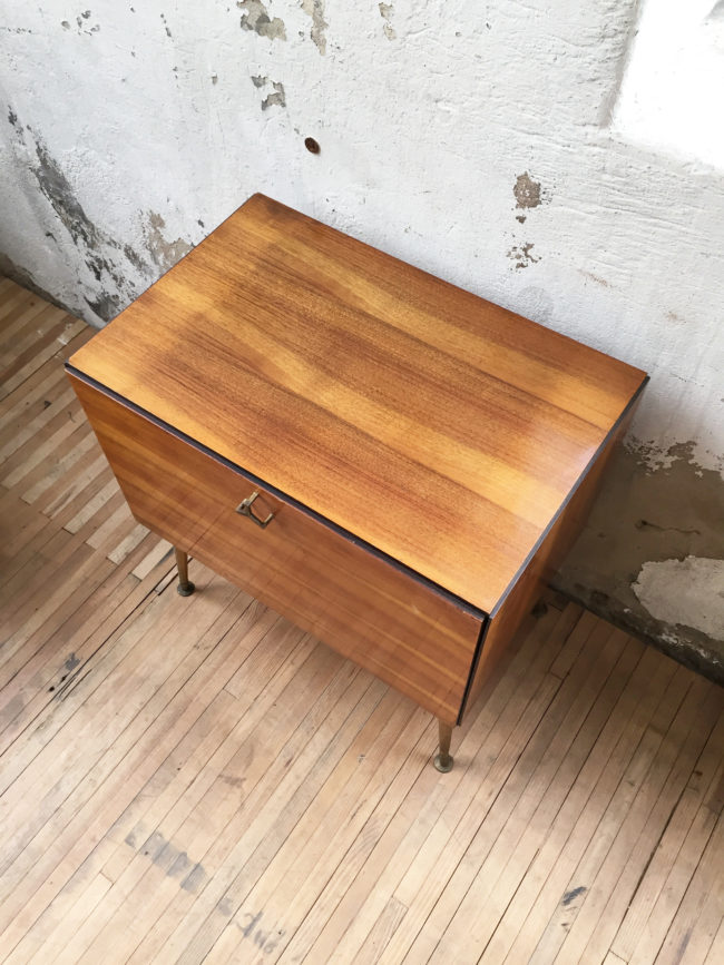 Utilisé pour ranger les vinyles à plat, on peut y insérer une platine sur le dessus.