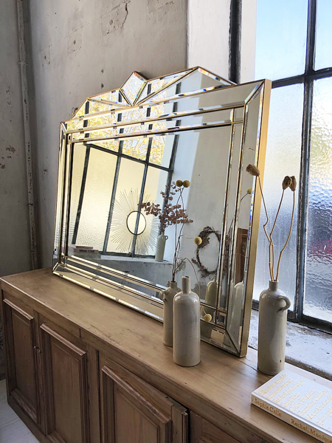 Ce miroir au format très conséquent serait parfait dans une salle de bain au dessus d’une double vasque, apportant une touche élégante et design à votre intérieur. Il trouverait également très bien sa place au dessus d’une enfilade ou d’un canapé, apportant profondeur à la pièce, tout en habillant vos murs de façon singulière.
