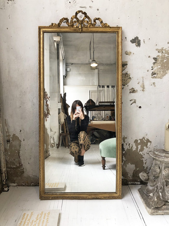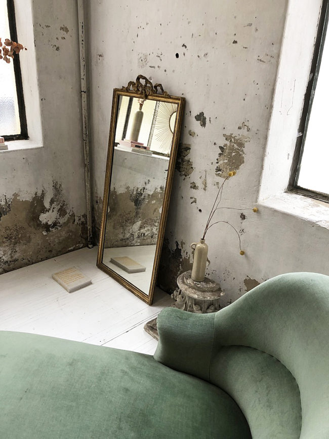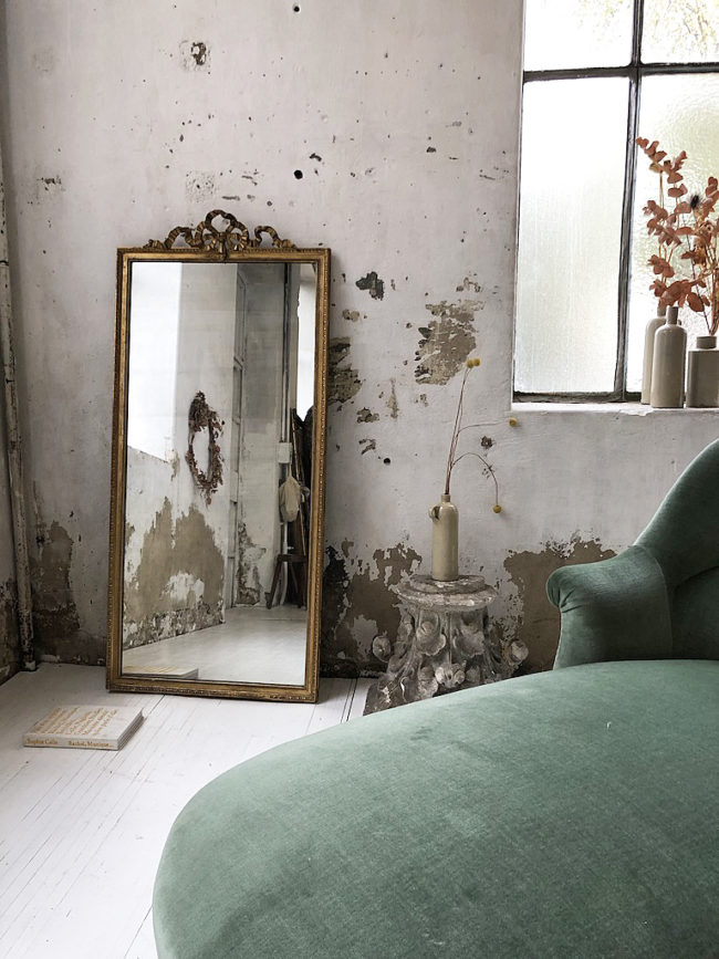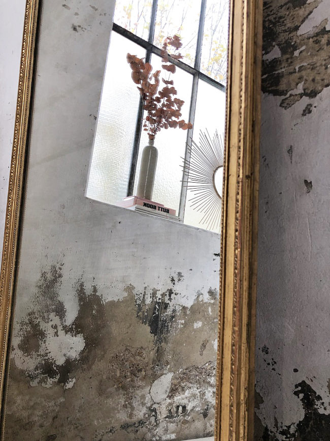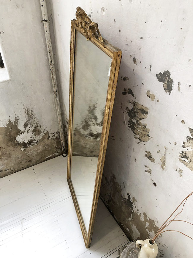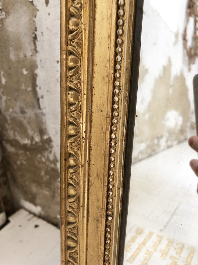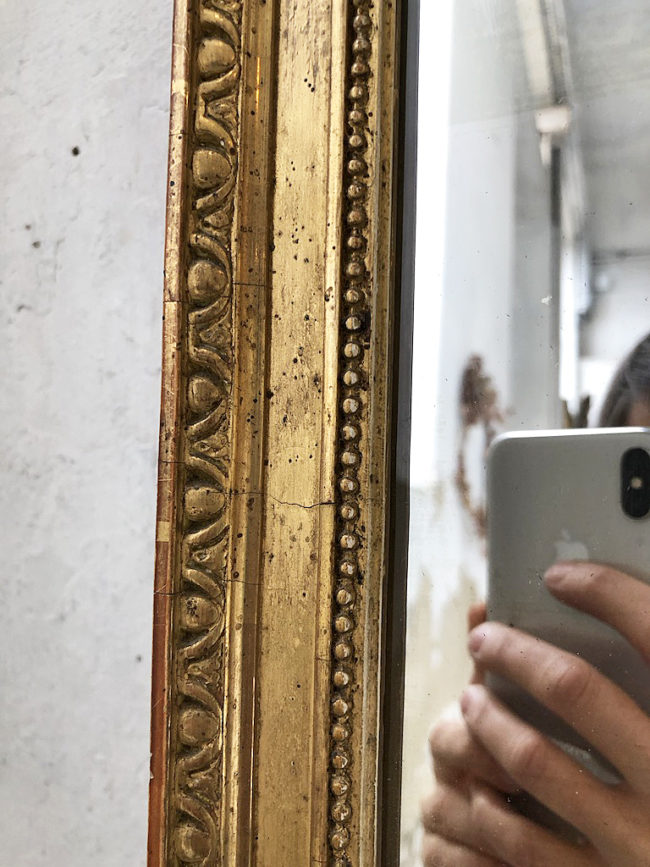 La glace au mercure est très légèrement piquée par endroits, lui offrant toute son authenticité.